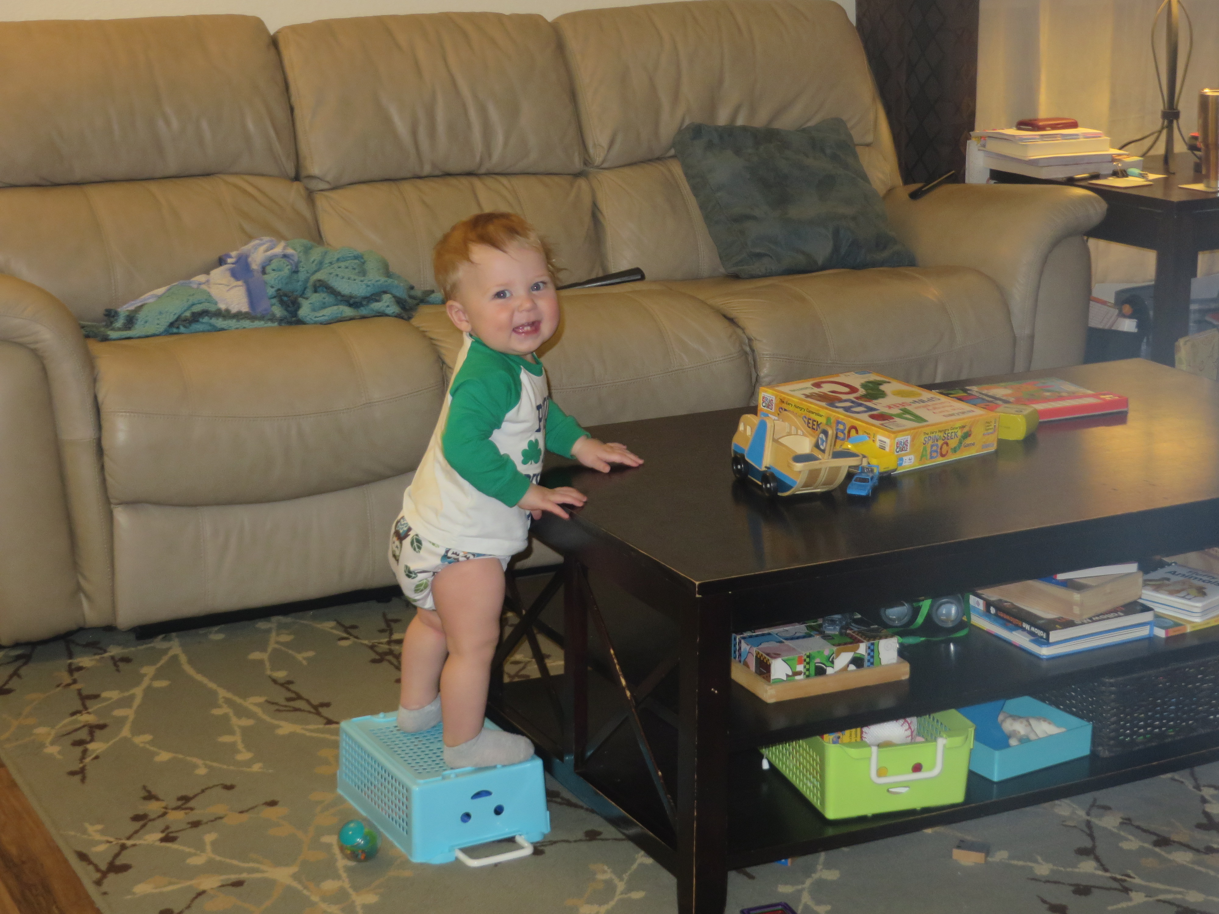 Dislikes: long car rides, diaper changes, clothes changes, Mama walking away, being confined (in the car seat, in the stroller, in the shopping cart), getting his face washed