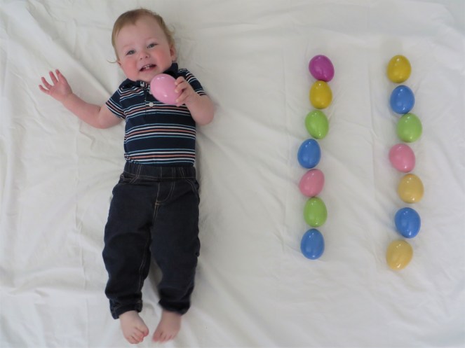 Milestones: saying “z” sound, saying “tuh” sound, crawling on hands and knees more regularly, responding to “no,” signing “milk” (maybe?)