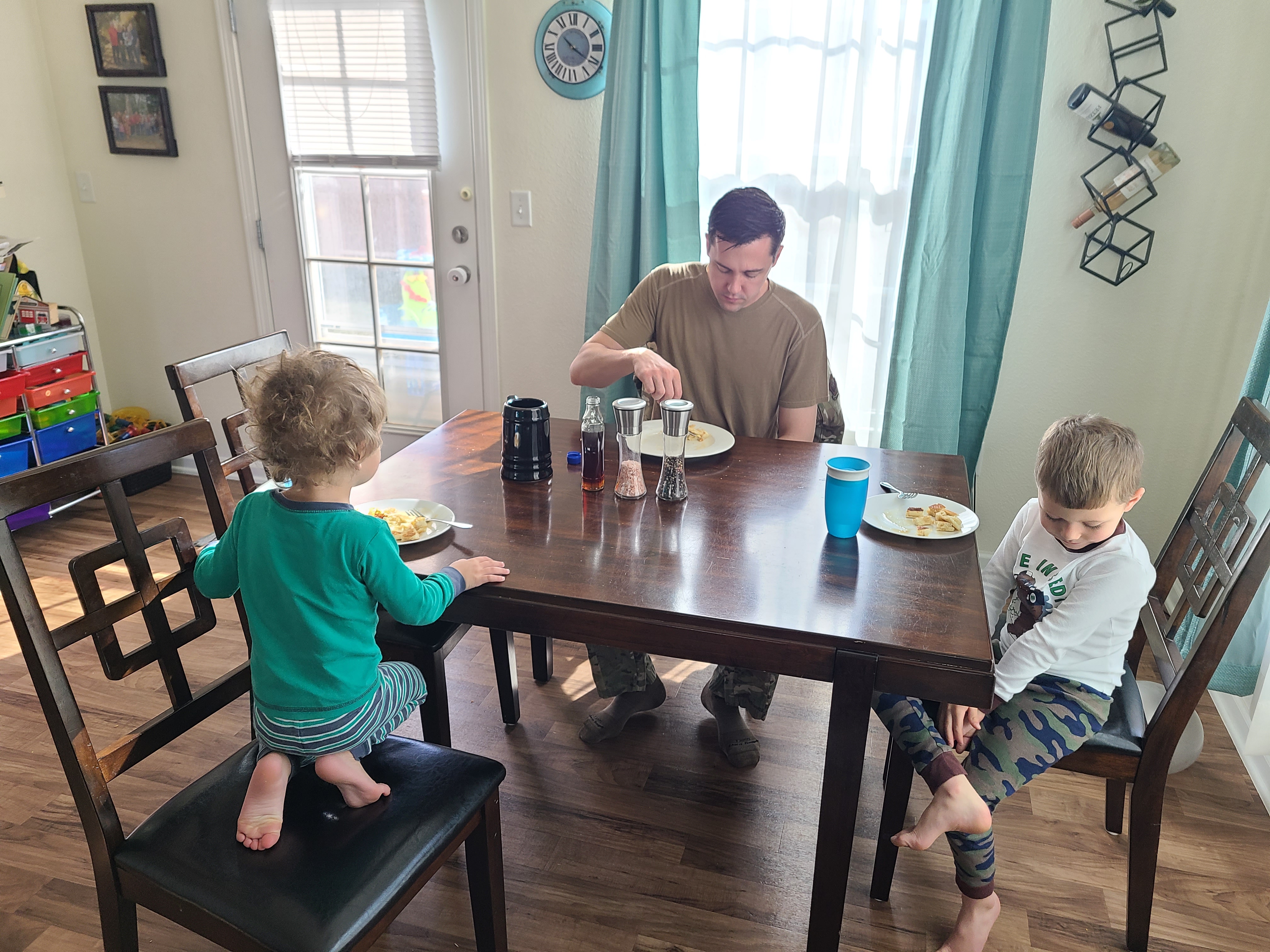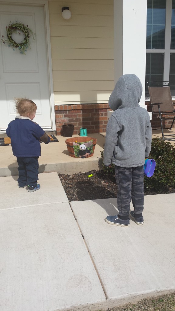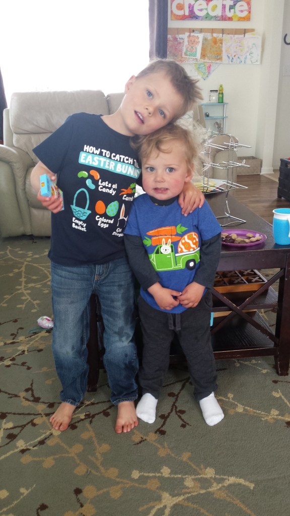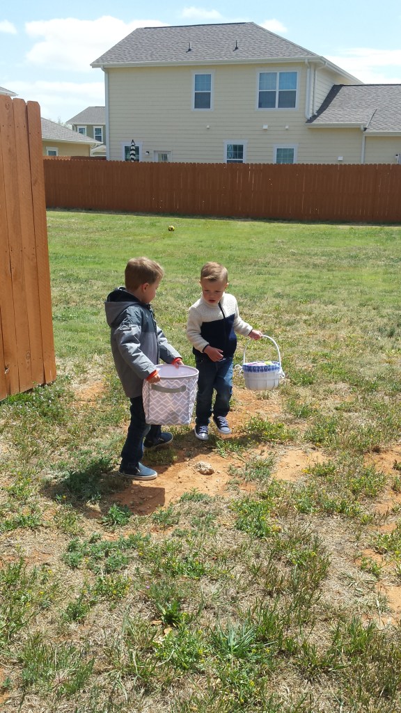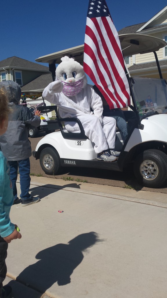 Pretty early on in our lockdown, my friend (and neighbor) Kayla and I agreed to be quarantine buddies. I had a deployed spouse, and she was newly pregnant, so we traded off childcare so she could get to prenatal appointments (she wasn’t allowed to bring her 3 year old because of COVID) and so I could run errands without kids. I remember feeling really paranoid about bringing my boys anywhere at that point. We celebrated Easter with a parade on base (instead of the egg hunt that had been planned) and a small Easter egg hunt I set up for my boys and Kayla’s son, Nehemiah.