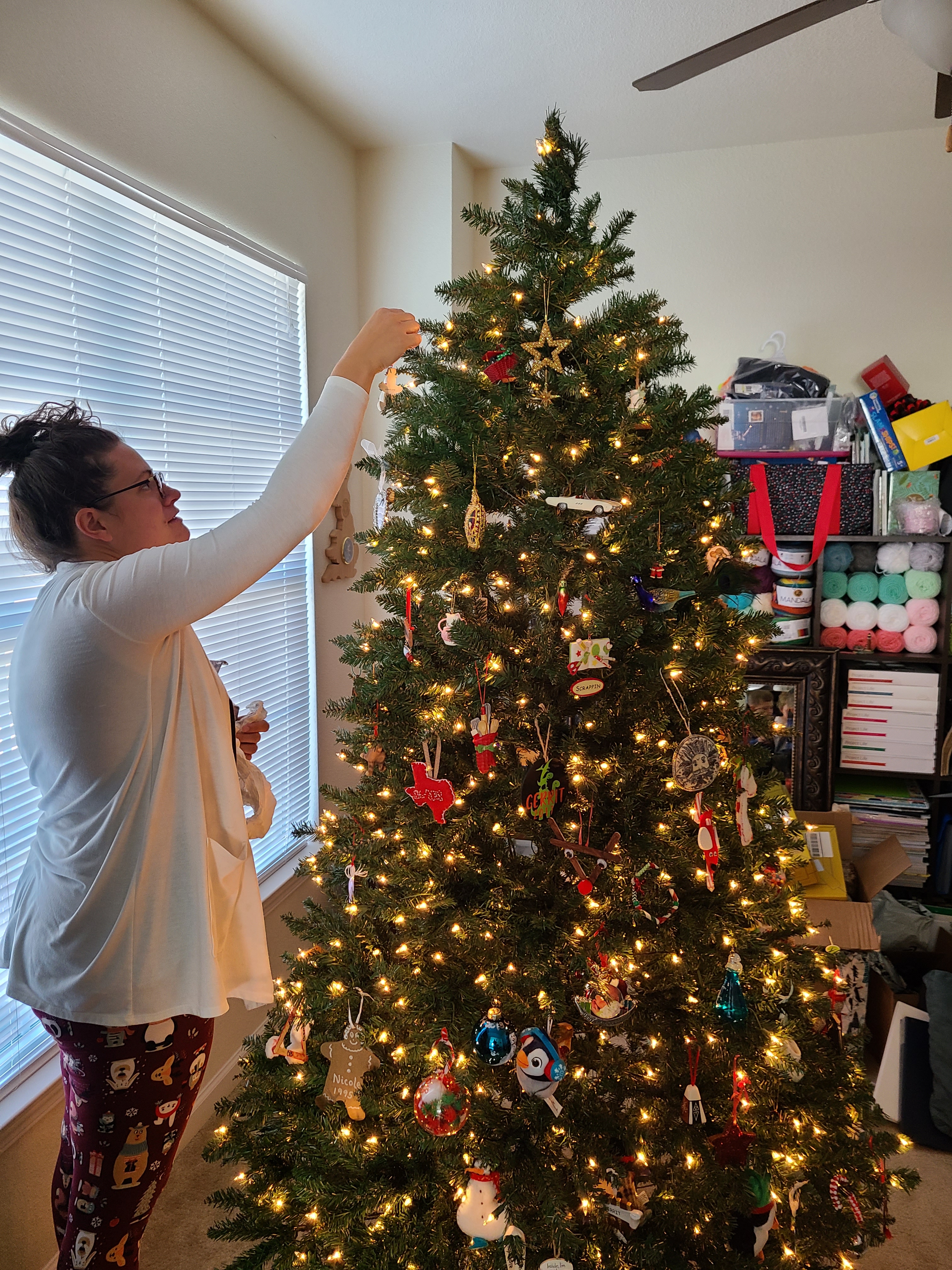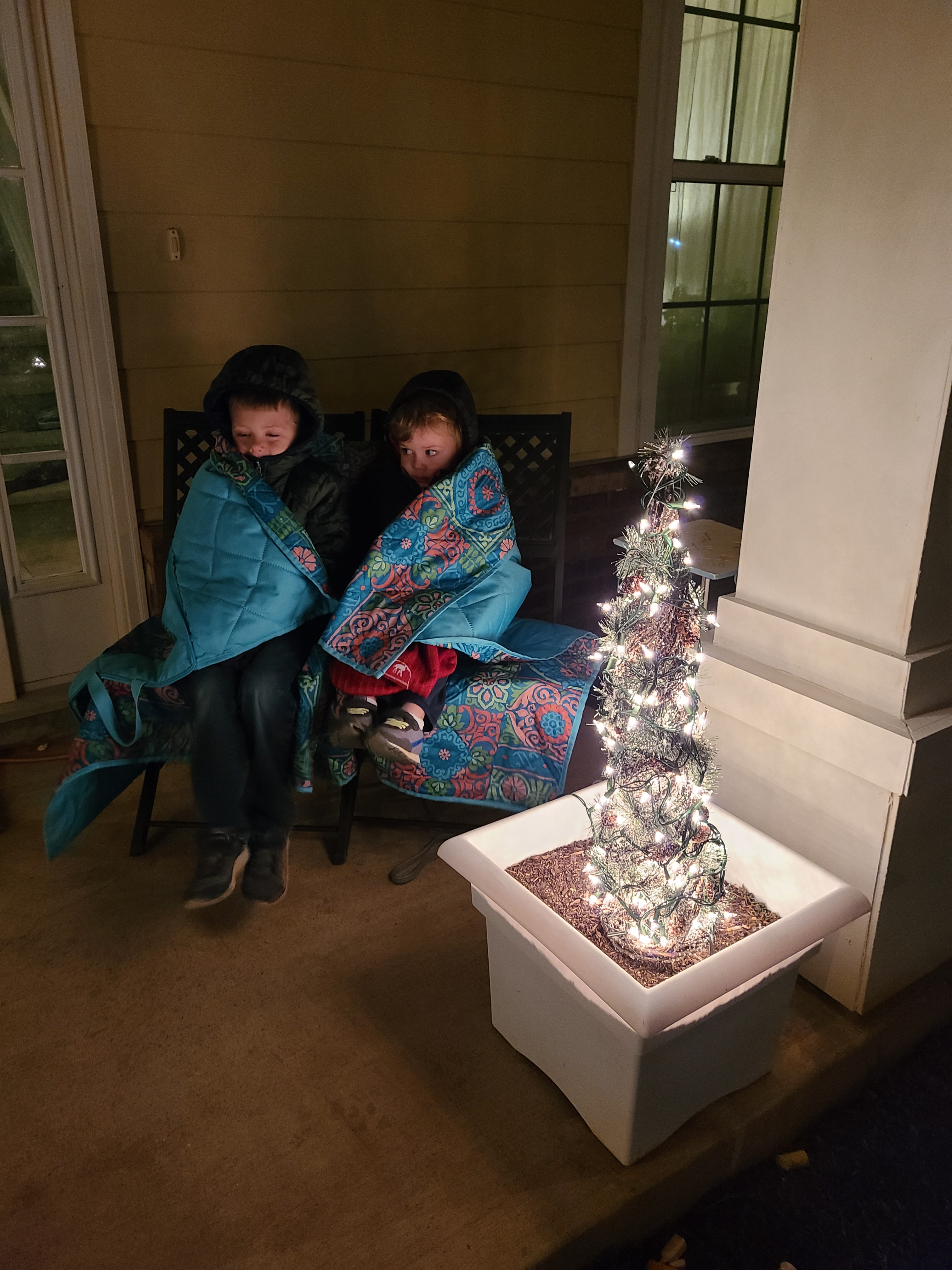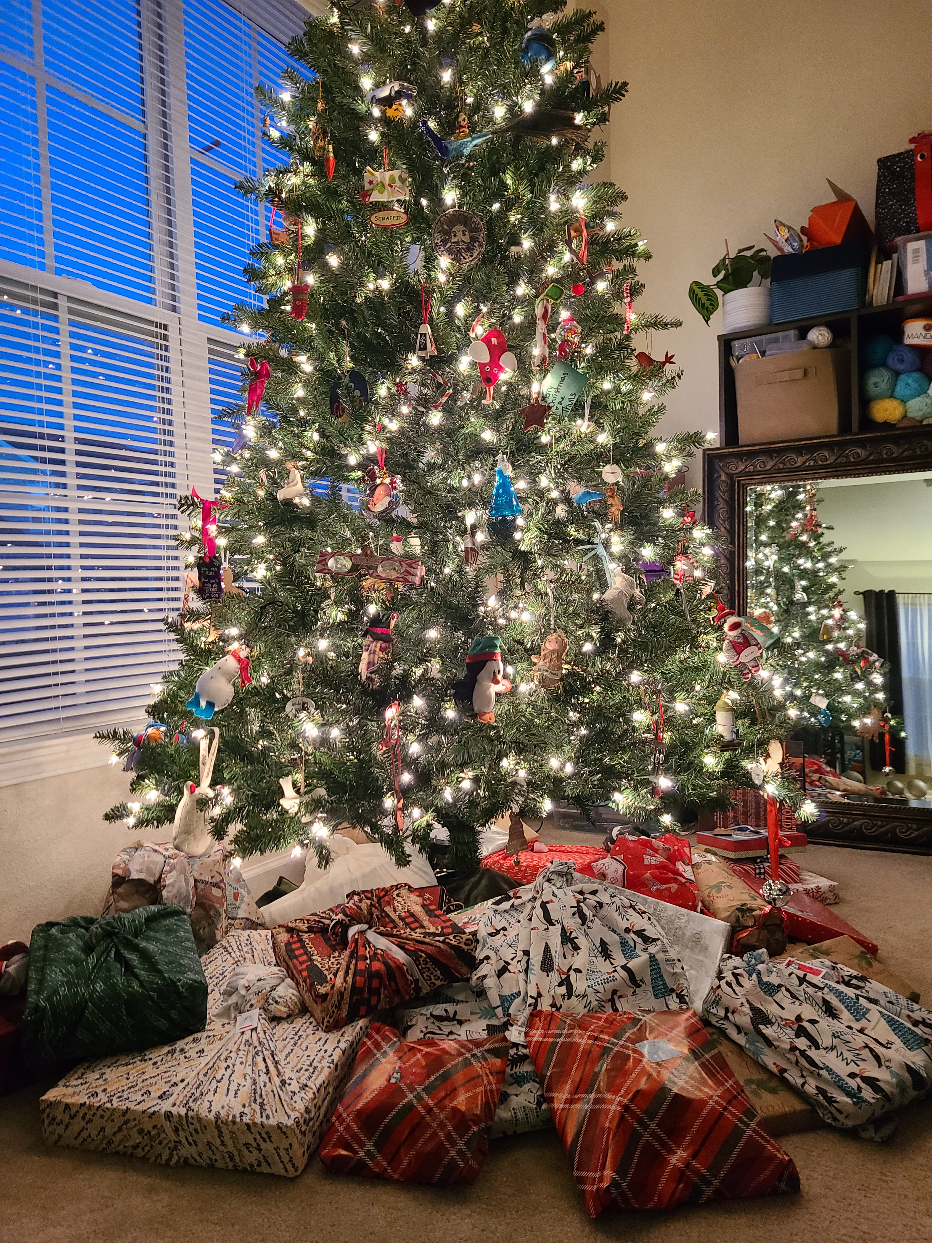 After Thanksgiving, we pulled out our Christmas tree to decorate! This was probably my least stressful year of decorating the tree. I didn’t even bother pulling out any ornaments besides the boys’ while they were excited about the tree. Once they had their ornaments up, Andrew and I added our own (letting them help when they wanted to). This year Berend helped Andrew put the angel on top of the tree! And this was the first year I added some decorations to our front porch as well.