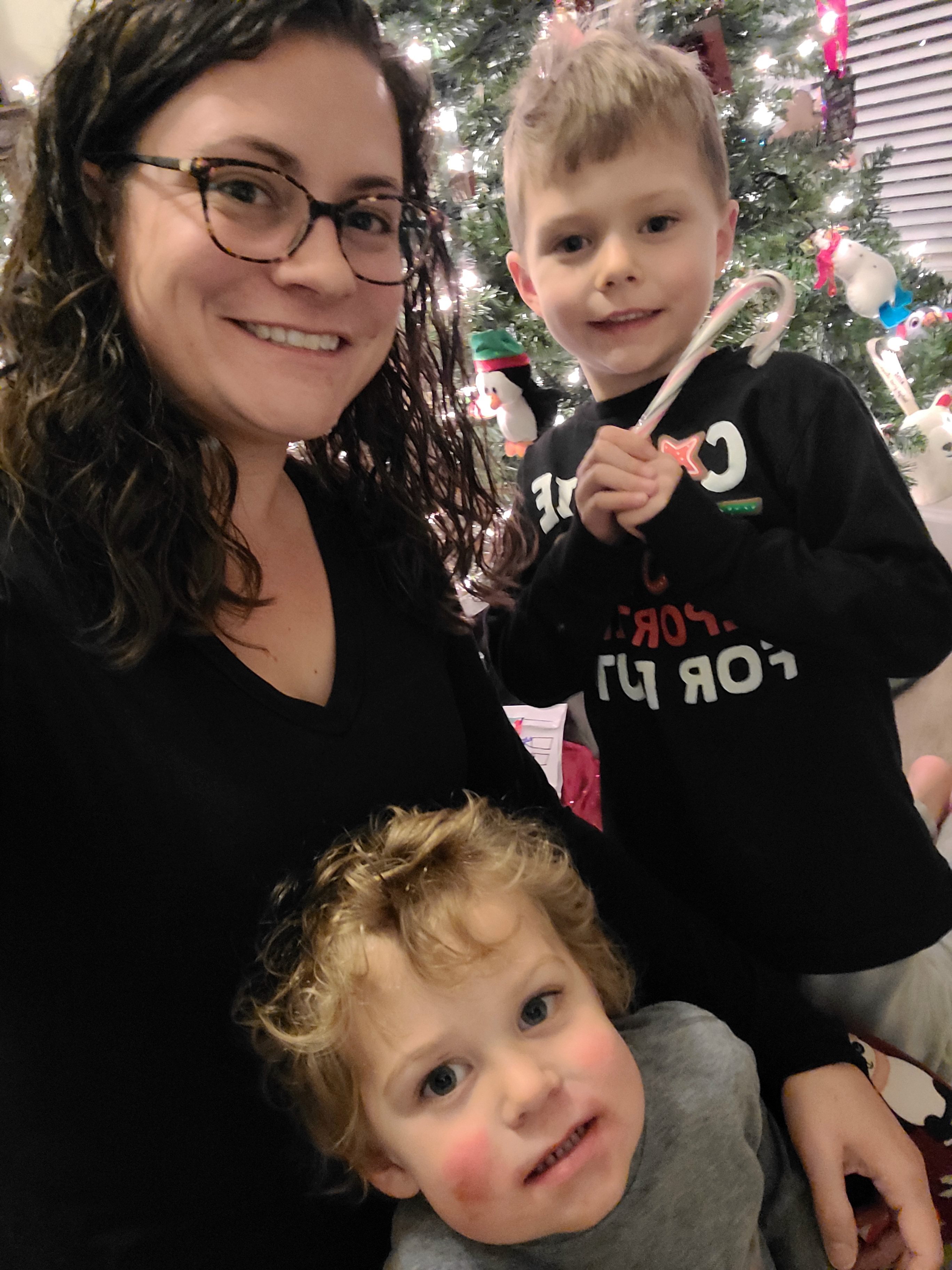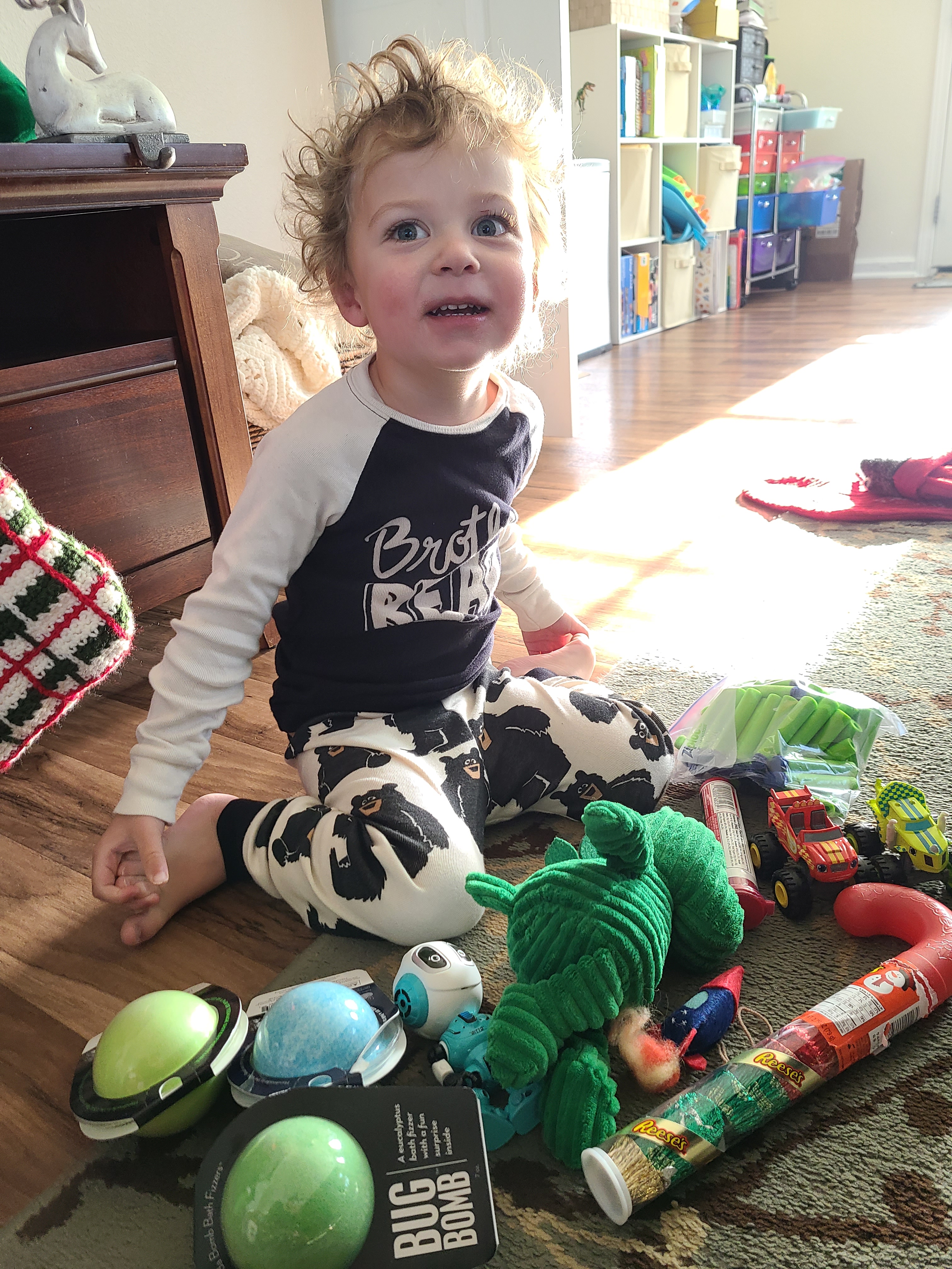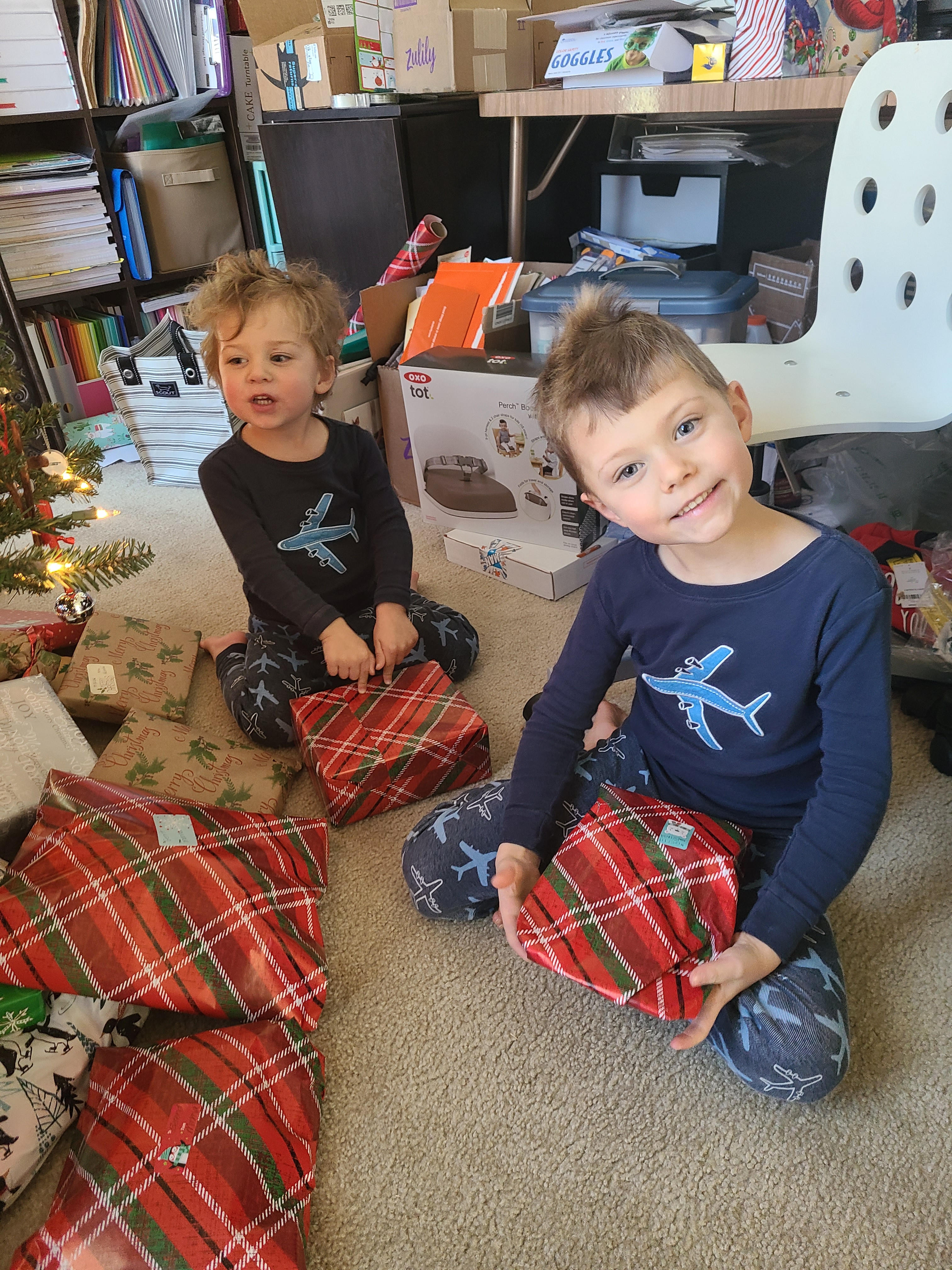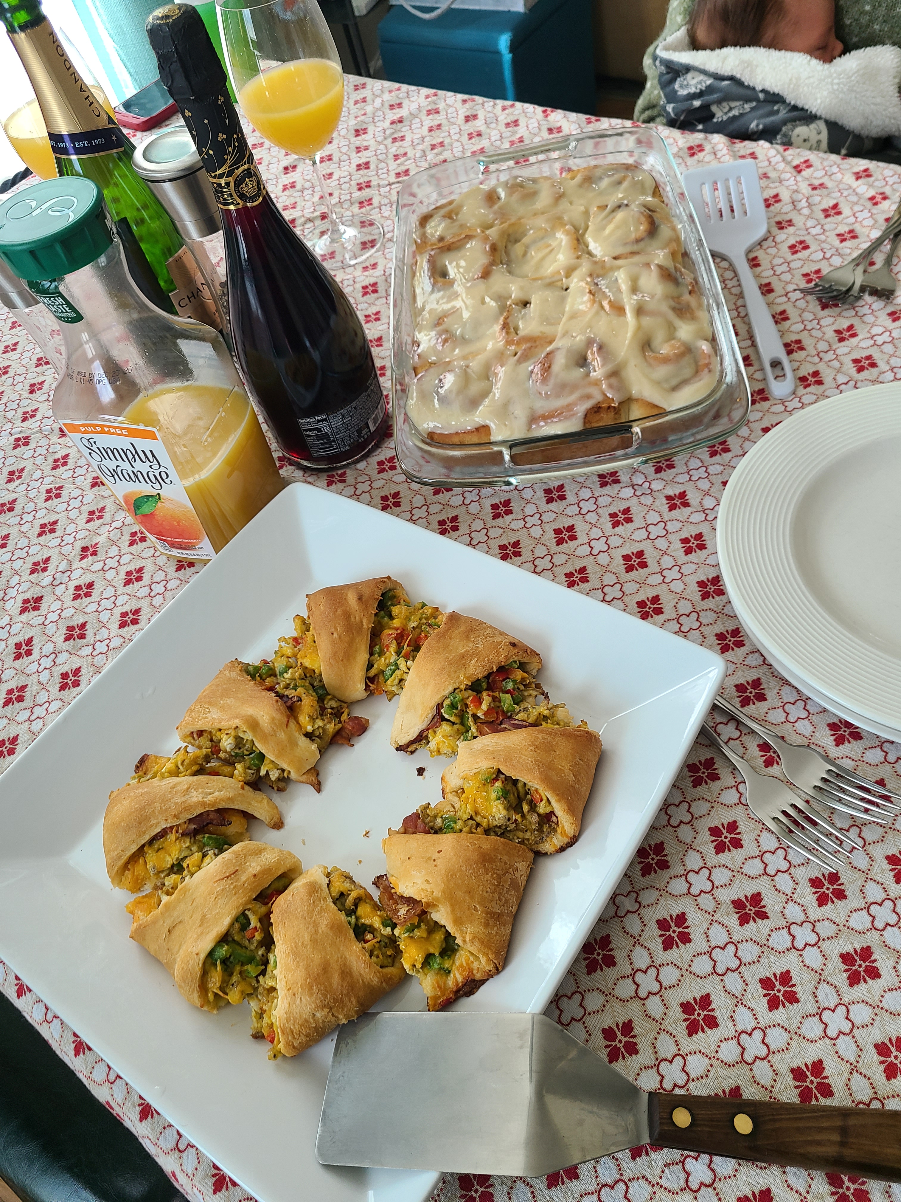 Our Christmas was low-key but normal: we opened presents, hosted Christmas brunch, and relaxed! I tried to keep everything as normal as possible. The boys woke up and went through their stockings, and they were really happy with that! They were in no hurry to open the gifts under the tree. I know we got through a few gifts before I got going with brunch, but I also know it took us ALL DAY to get through the tree gifts (and I promise there weren’t that many!). We had brunch with our friends (and neighbors!): homemade cinnamon rolls, a Christmas egg and bacon wreath, and plenty of mimosas!