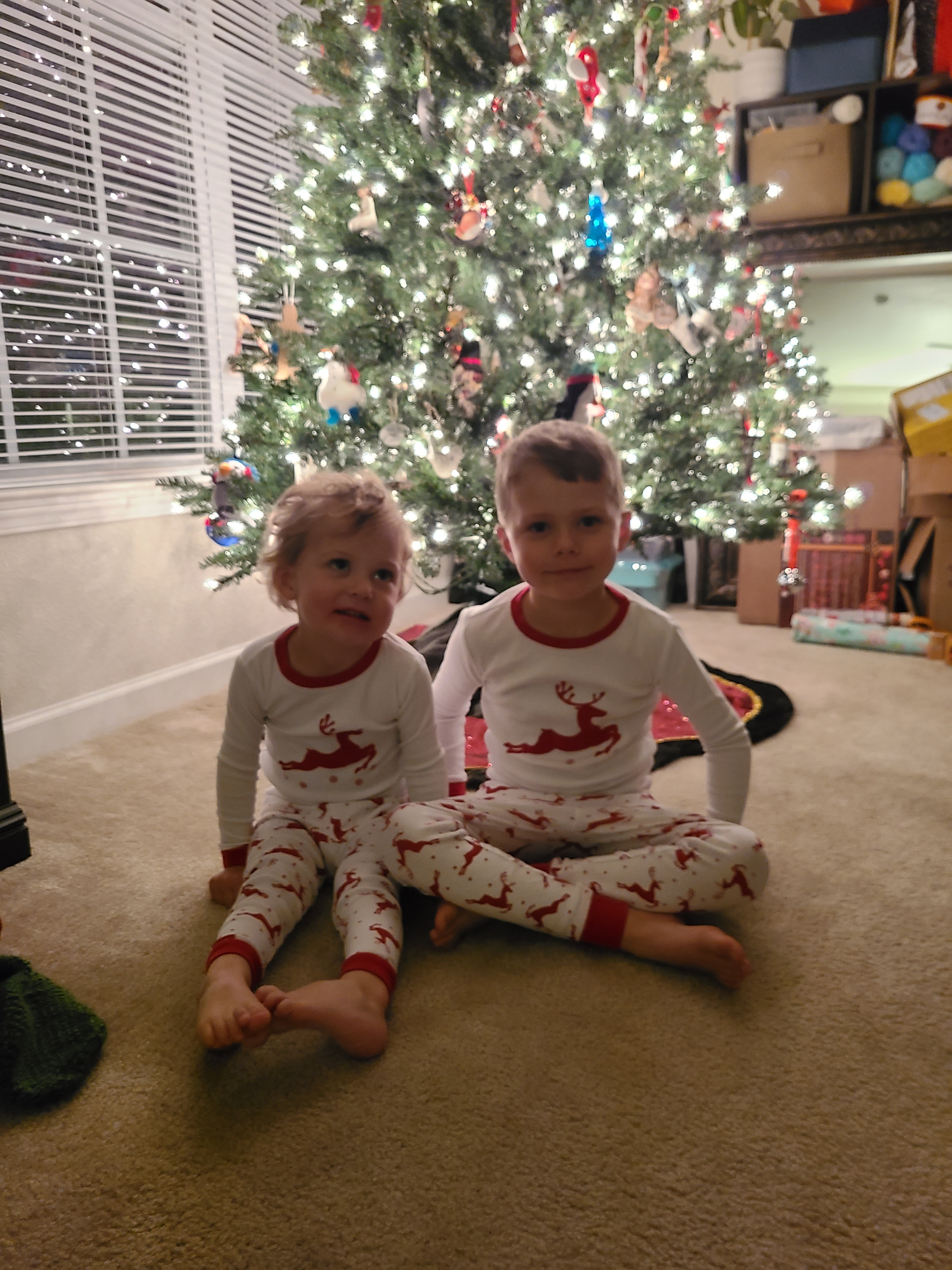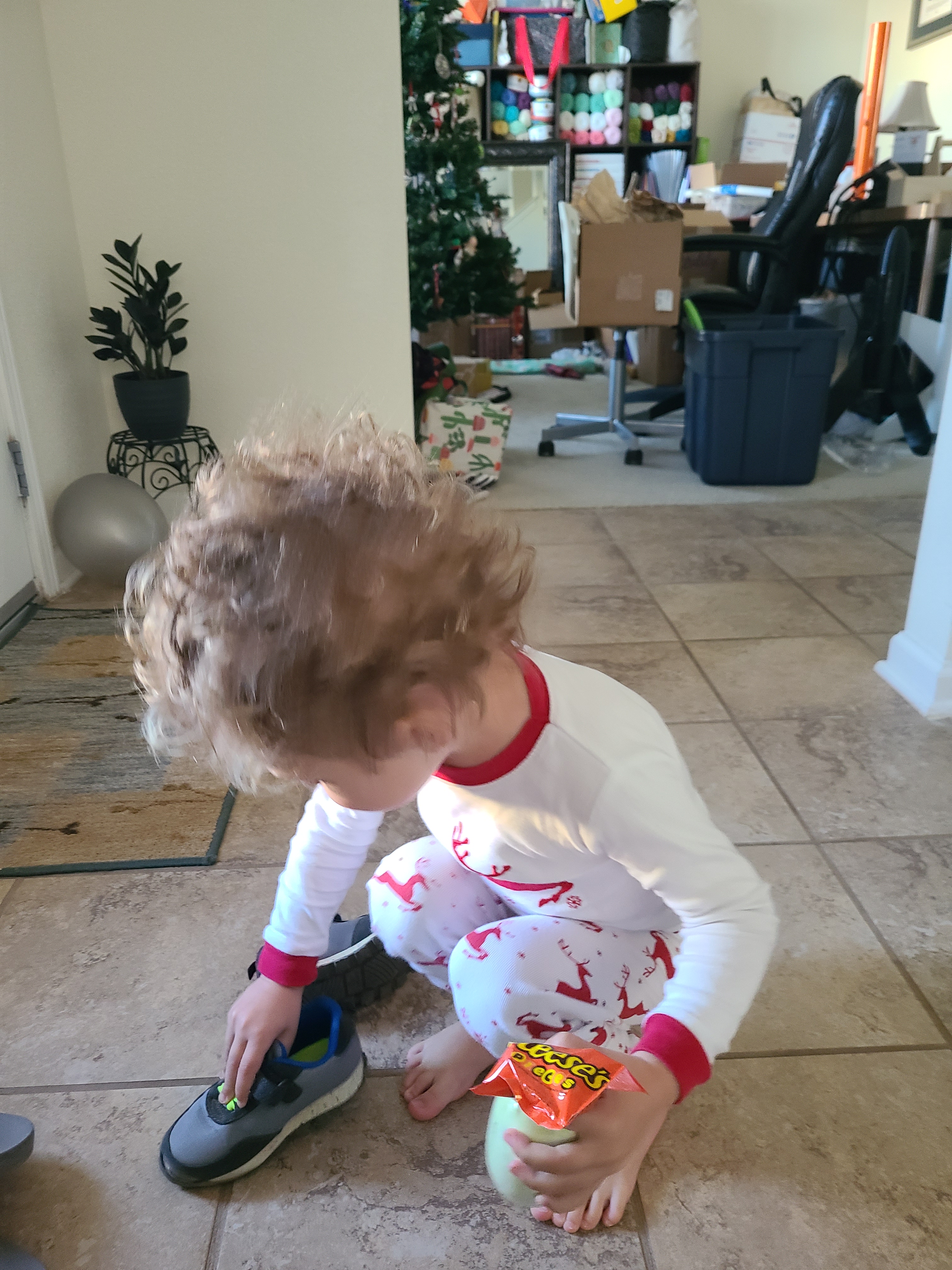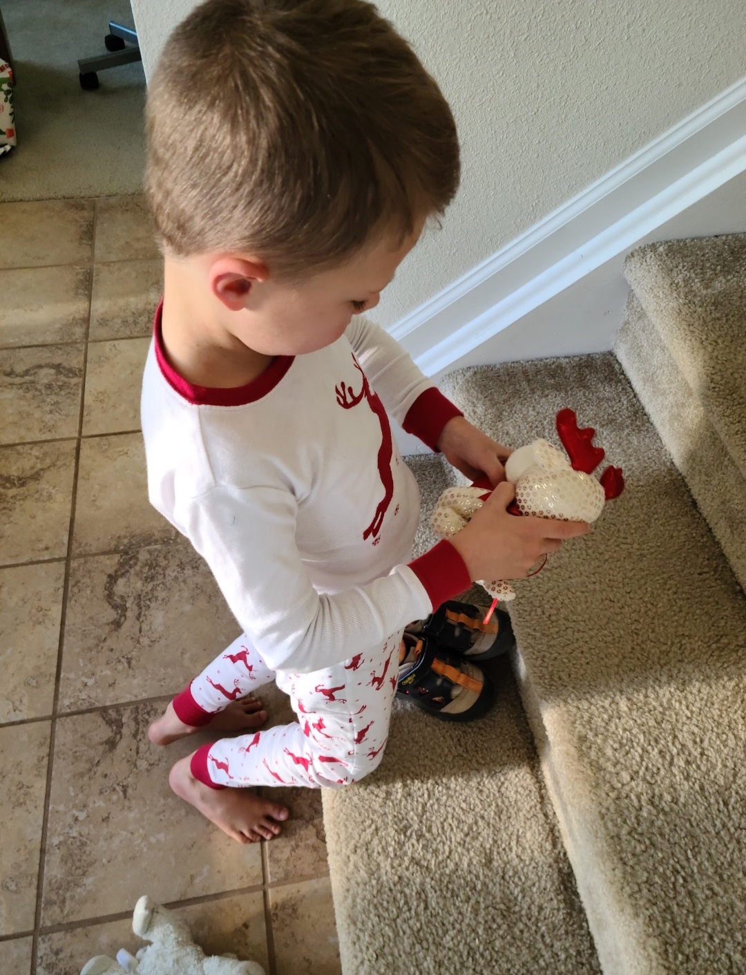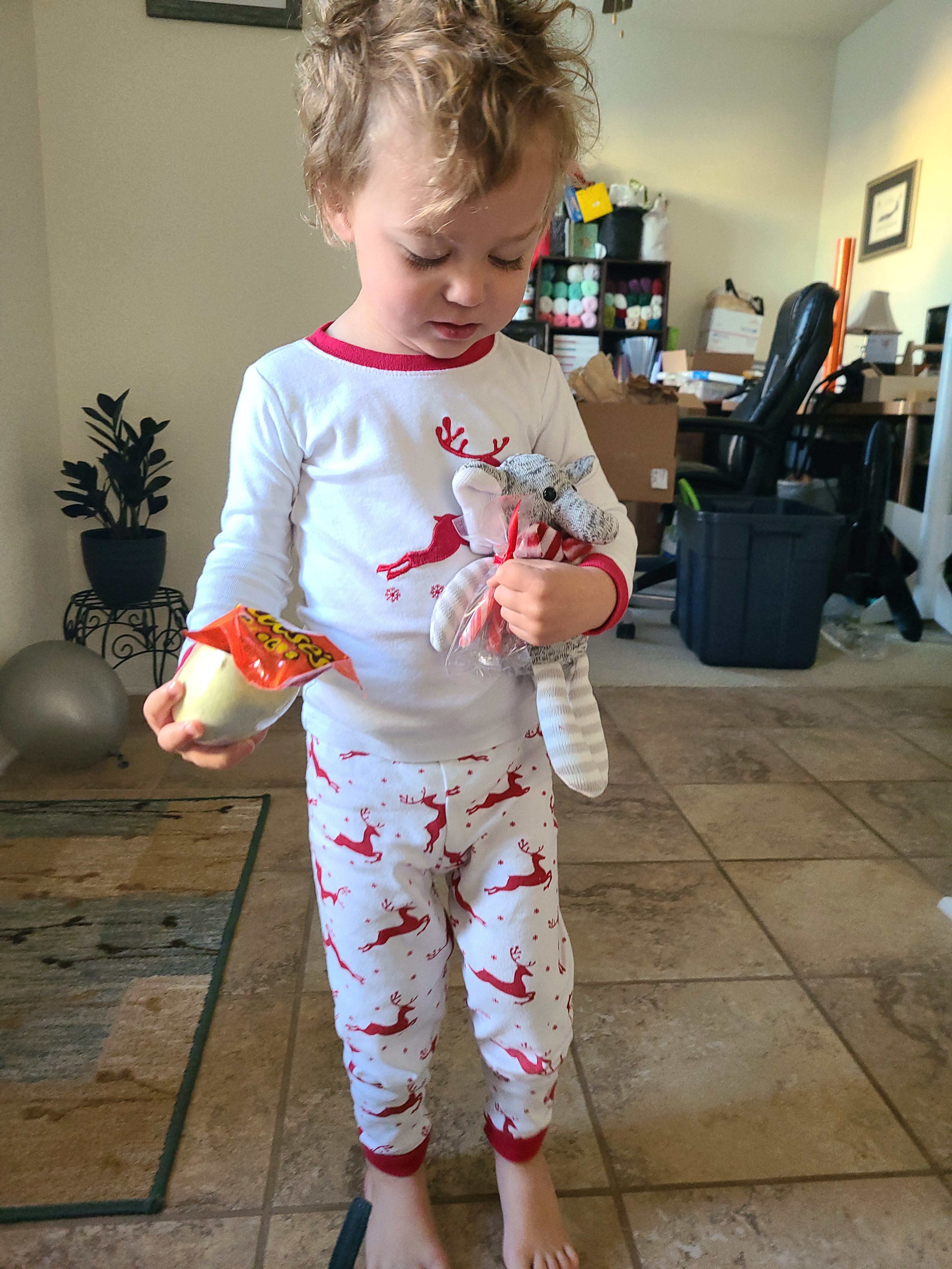 Our Christmas was low-key but normal: we opened presents, hosted Christmas brunch, and relaxed! I tried to keep everything as normal as possible. The boys woke up and went through their stockings, and they were really happy with that! They were in no hurry to open the gifts under the tree. I know we got through a few gifts before I got going with brunch, but I also know it took us ALL DAY to get through the tree gifts (and I promise there weren’t that many!). We had brunch with our friends (and neighbors!): homemade cinnamon rolls, a Christmas egg and bacon wreath, and plenty of mimosas!
