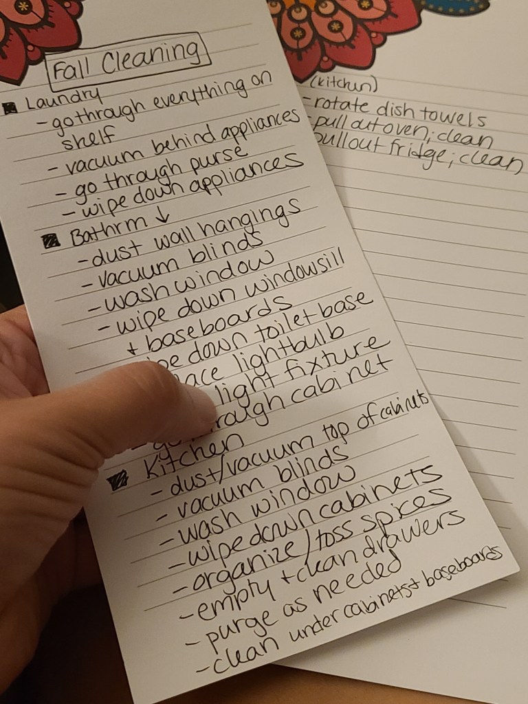 So I started with a list. A very long list. I went room by room thinking of everything that should be cleaned, wiped down, organized… you name it.
