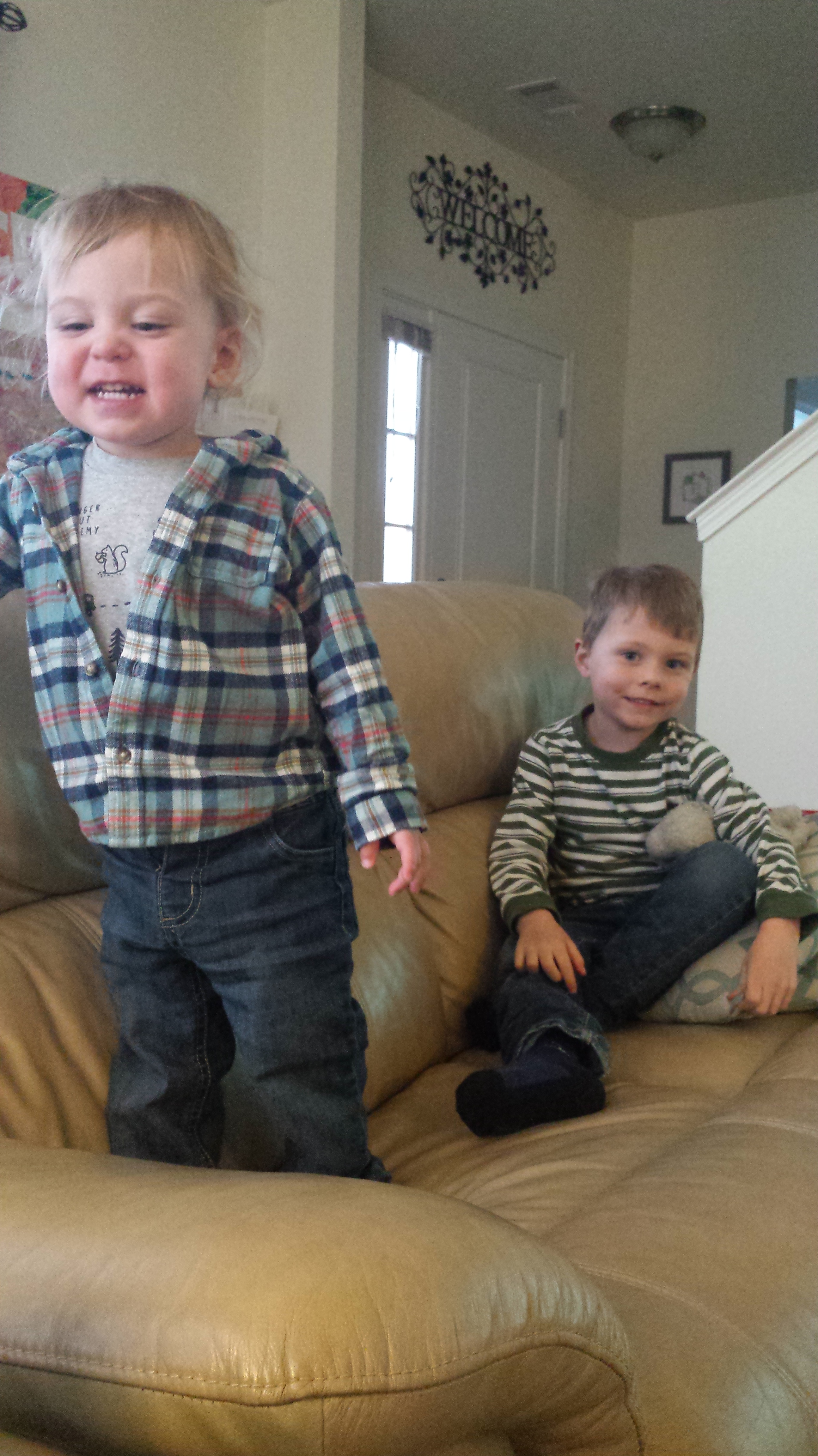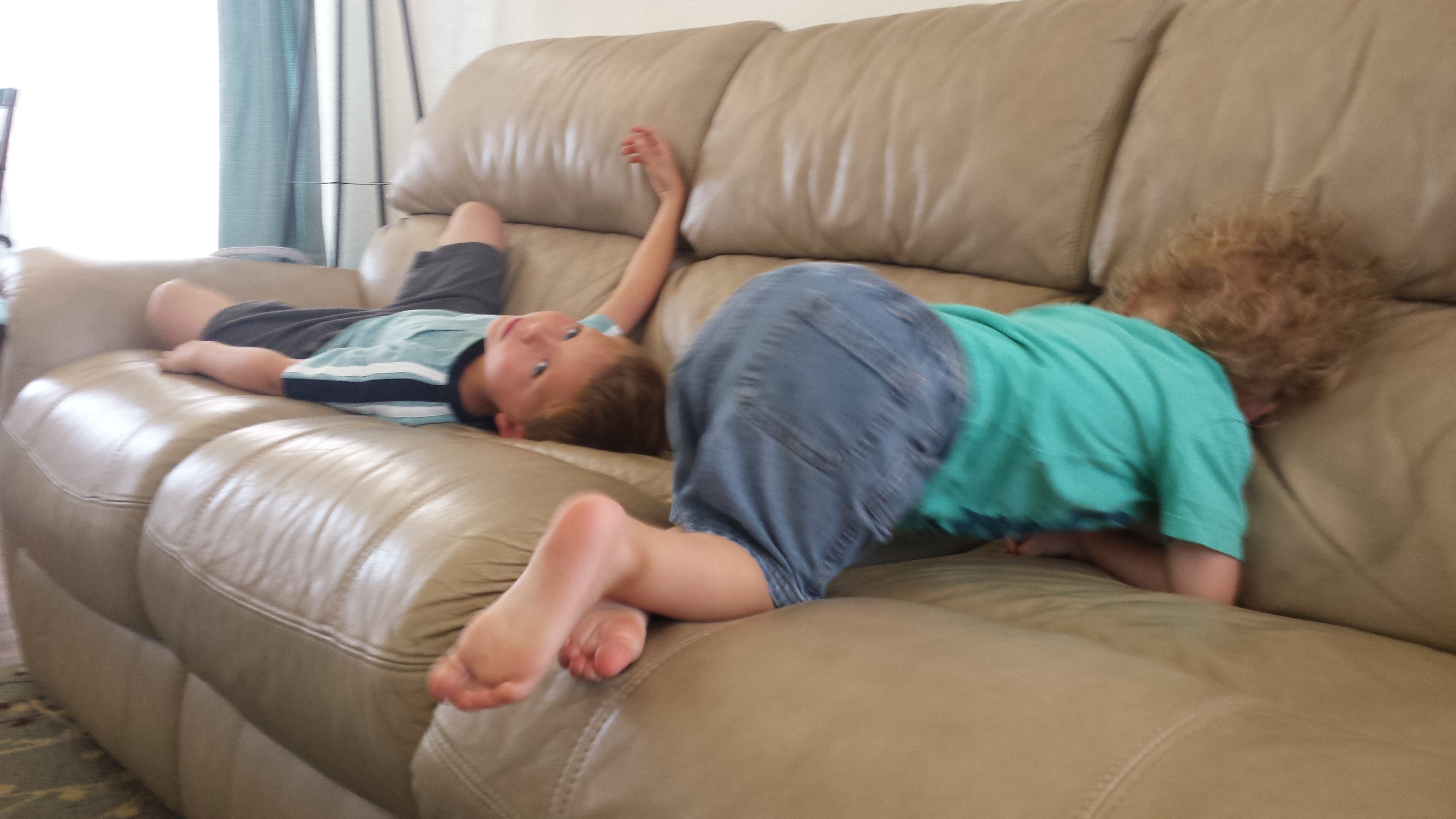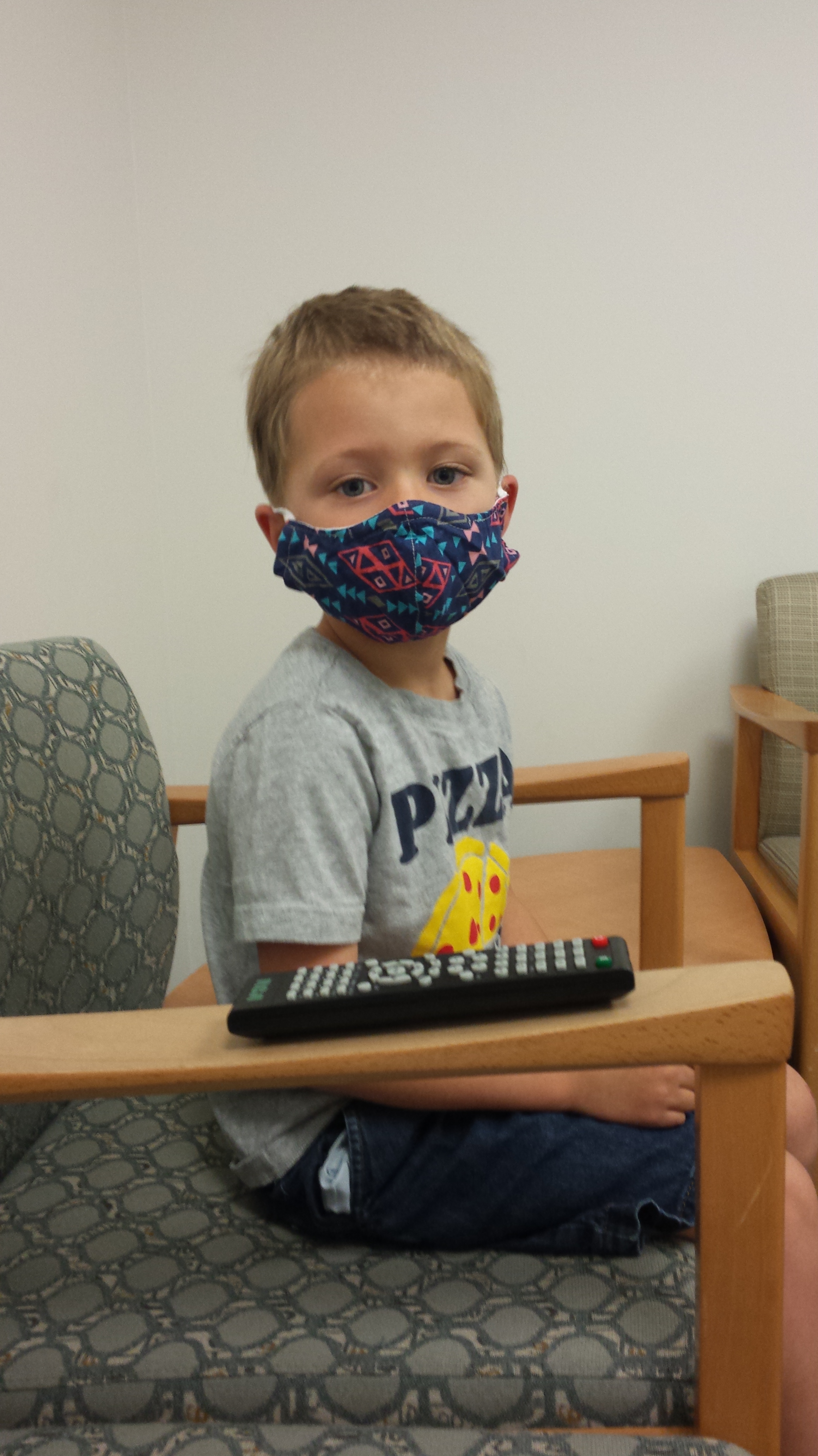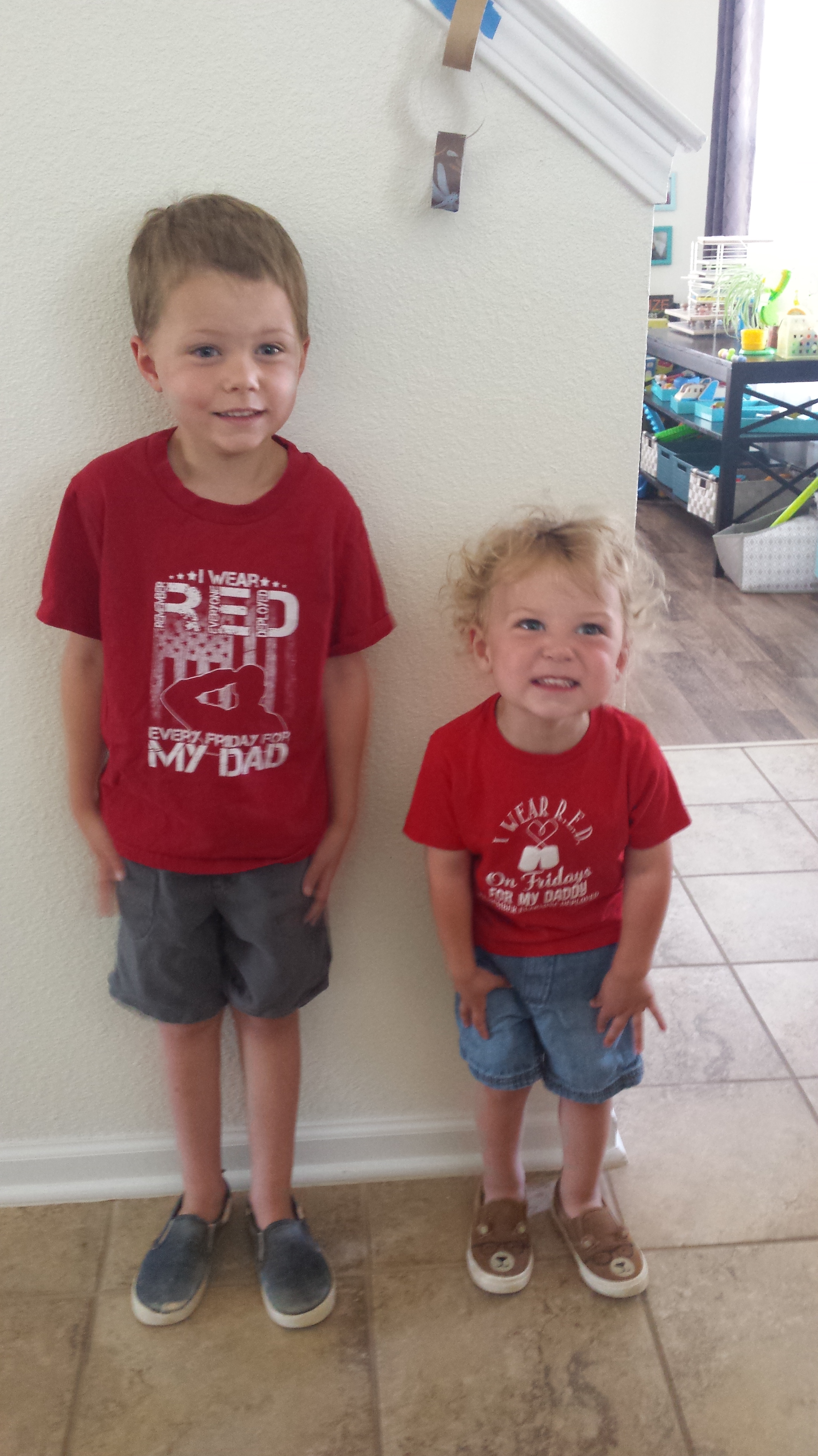 June 2020: wearing a mask when out of the house, rough-housing on the couch, finding fun at home, wearing red for Dada being deployed, Dada’s homecoming