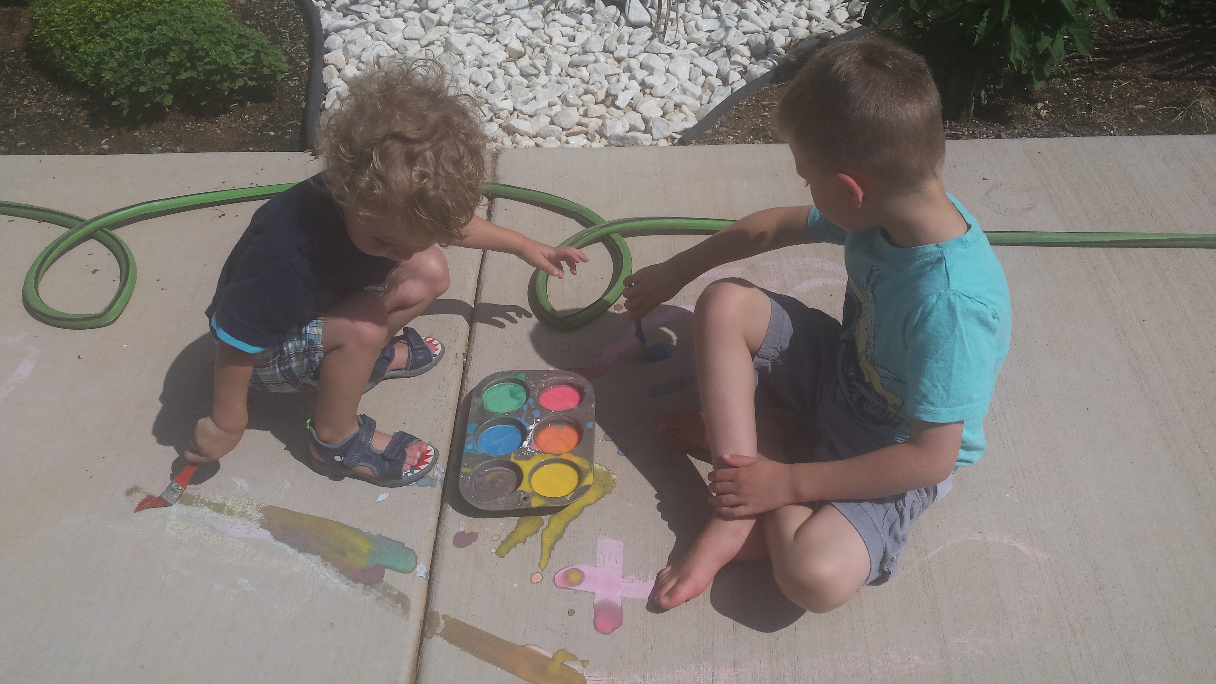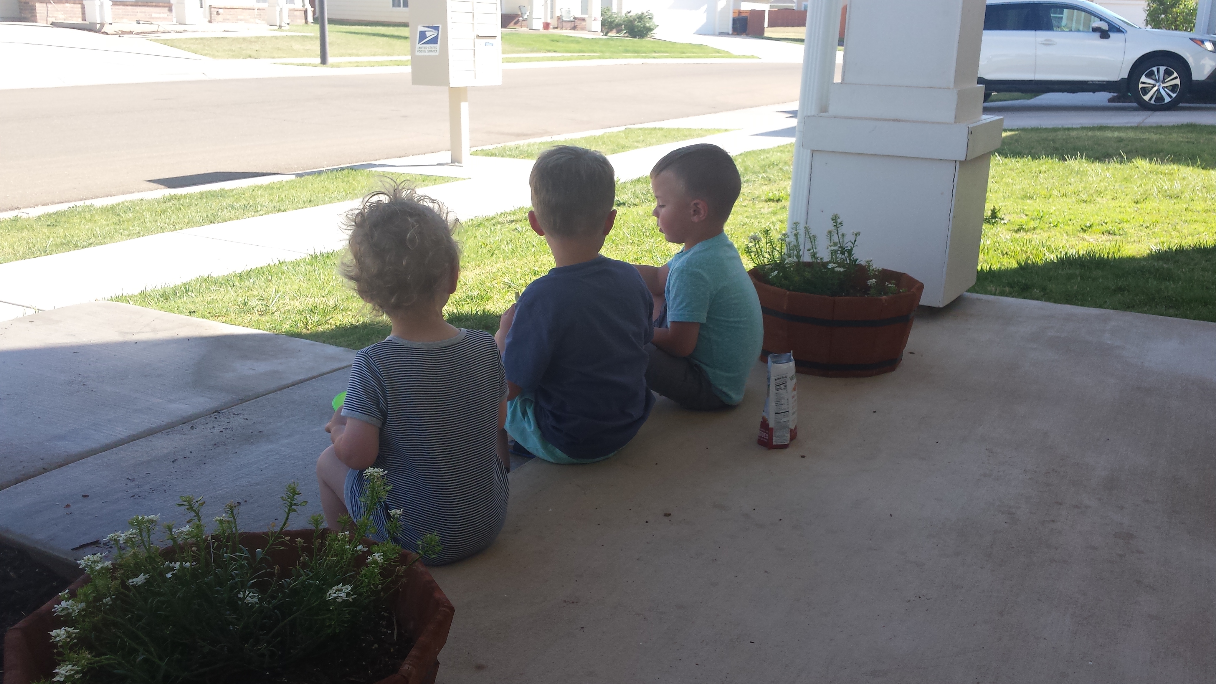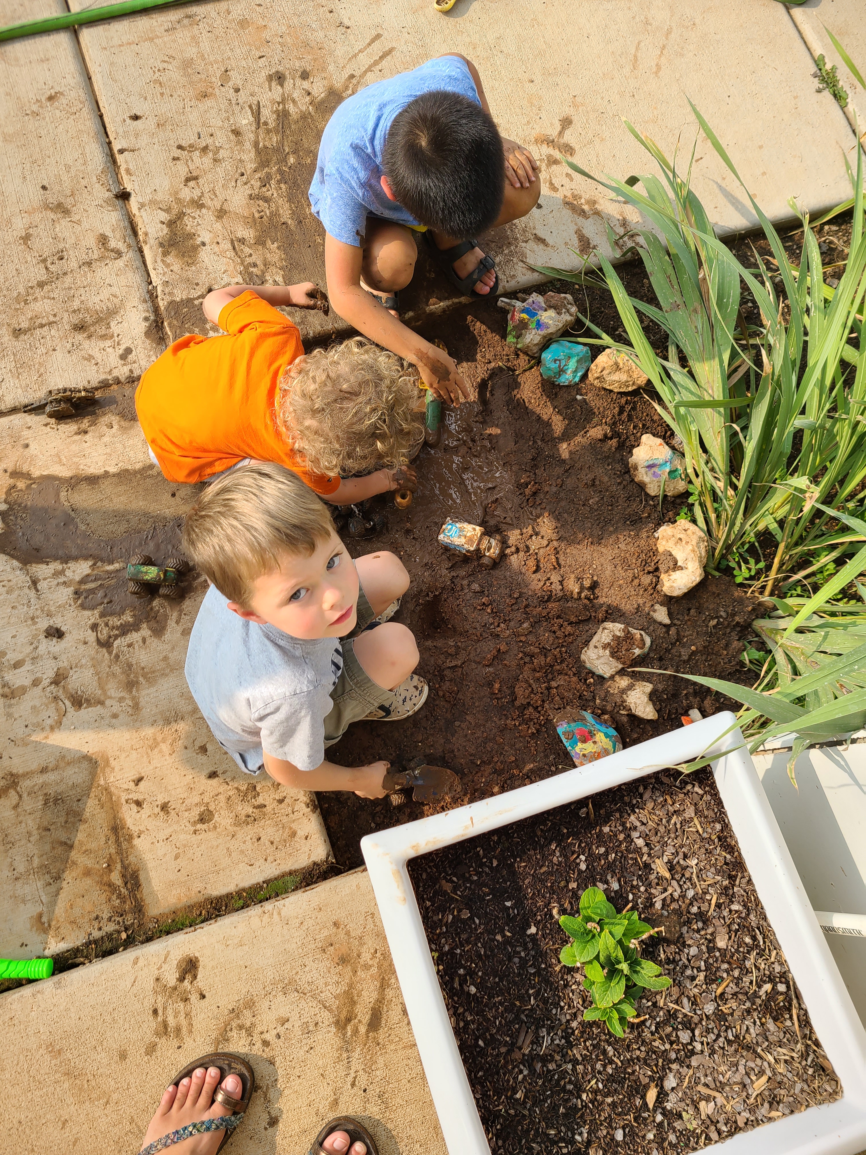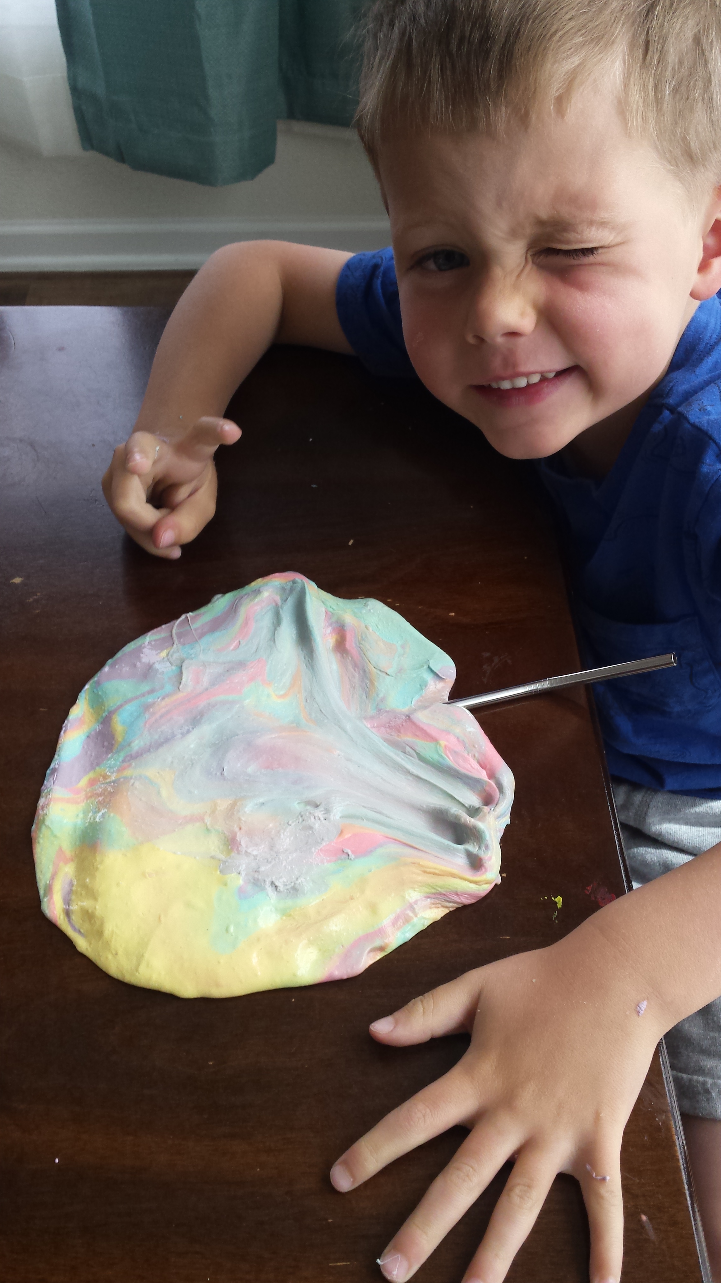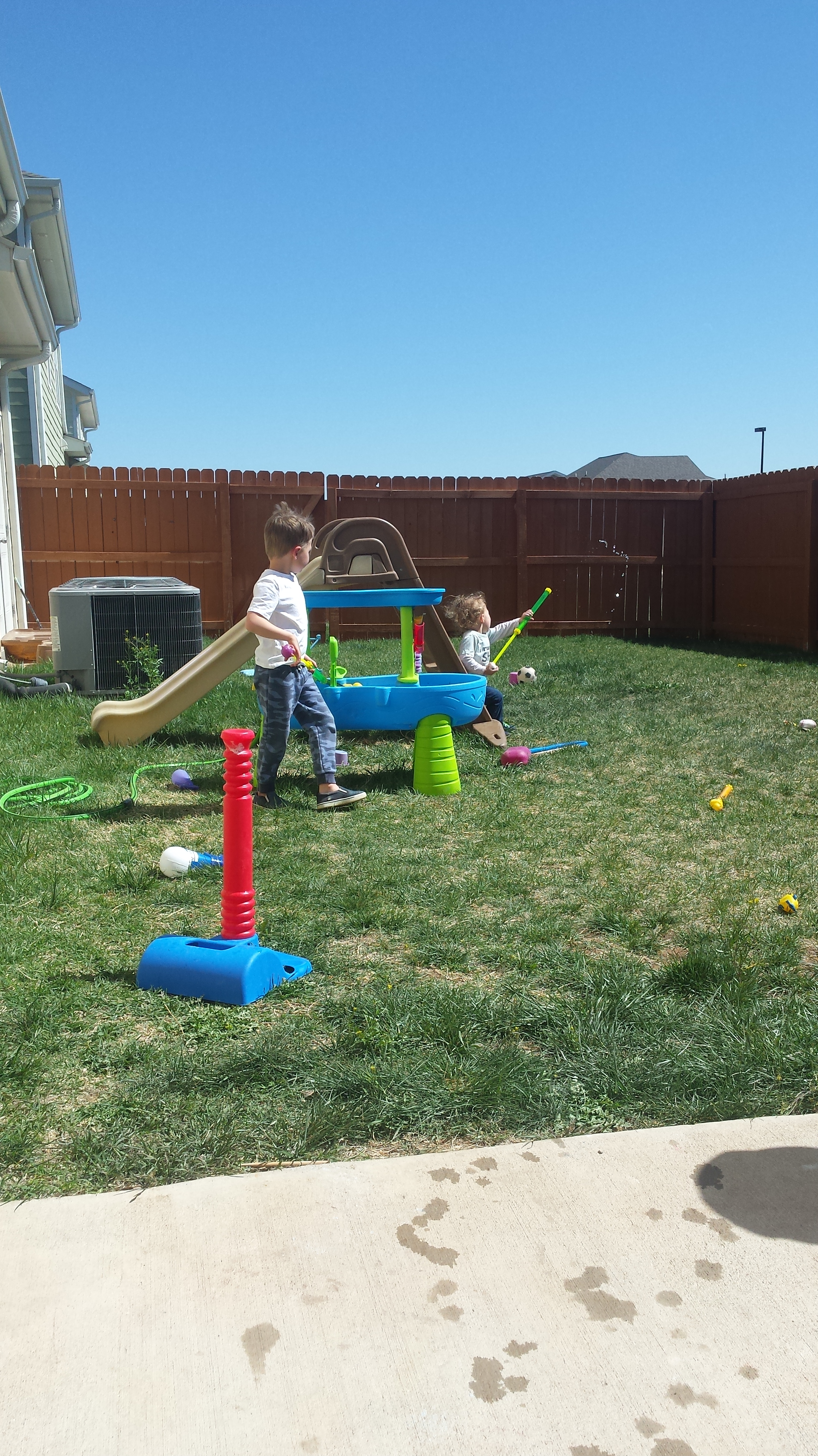April 2020: fun outside, Mama’s attempt at some “schoolwork,” Easter fun, day-after-Easter snow, haircuts at home, water fun in the mini splash pad, MORE goop/slime