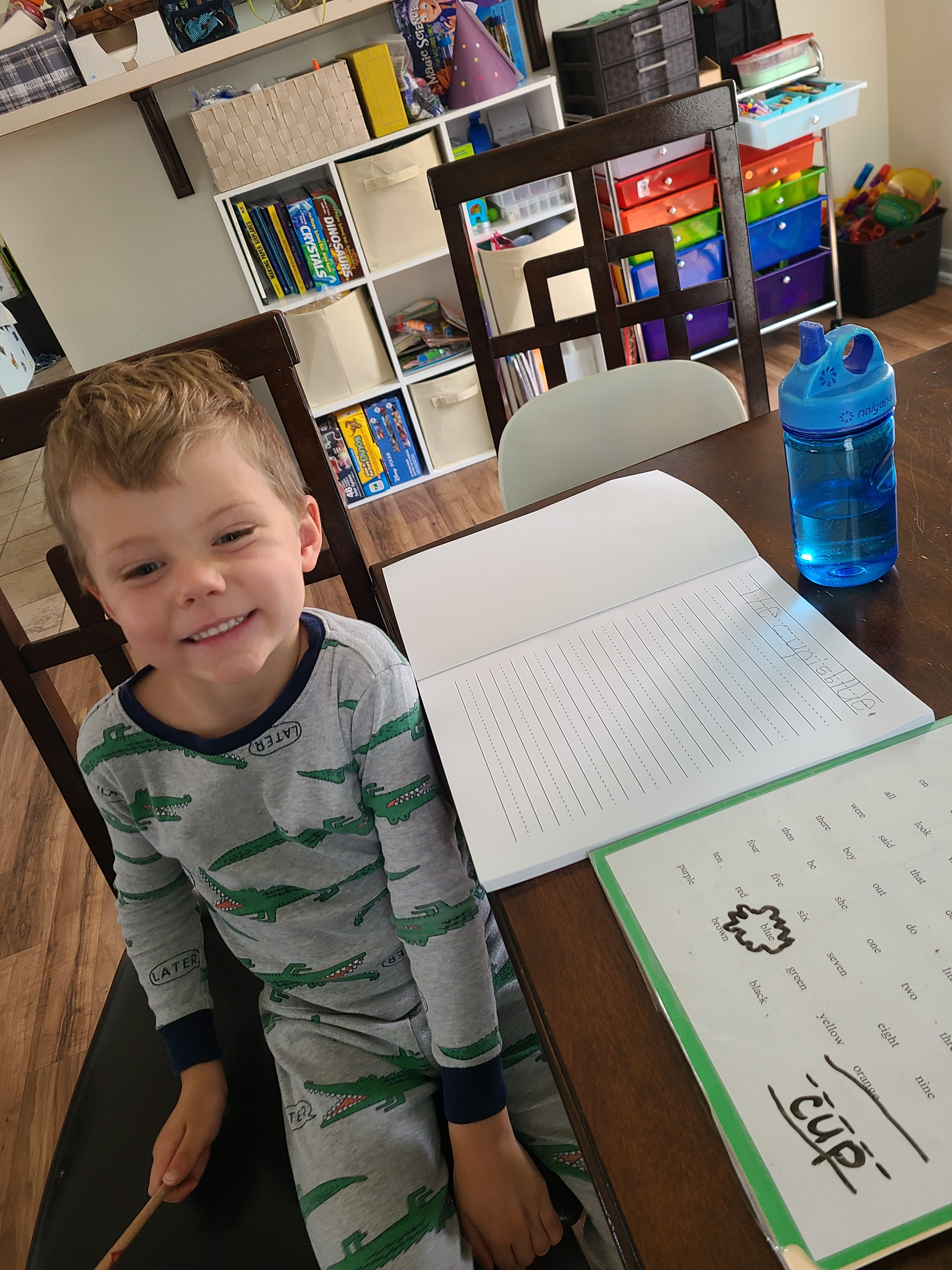I’m going to stop doing milestones, because I don’t even know what to put anymore! Gerrit started kindergarten a couple of months before turning six, but we opted to go with the full virtual option during the COVID-19 pandemic. So everything was done at home on a laptop he got from school. I know that when he started school, he already knew everything being taught. He was already counting to 100 and doing simple addition and subtraction. He knew all of his letters and letter sounds. He knew his shapes and colors.