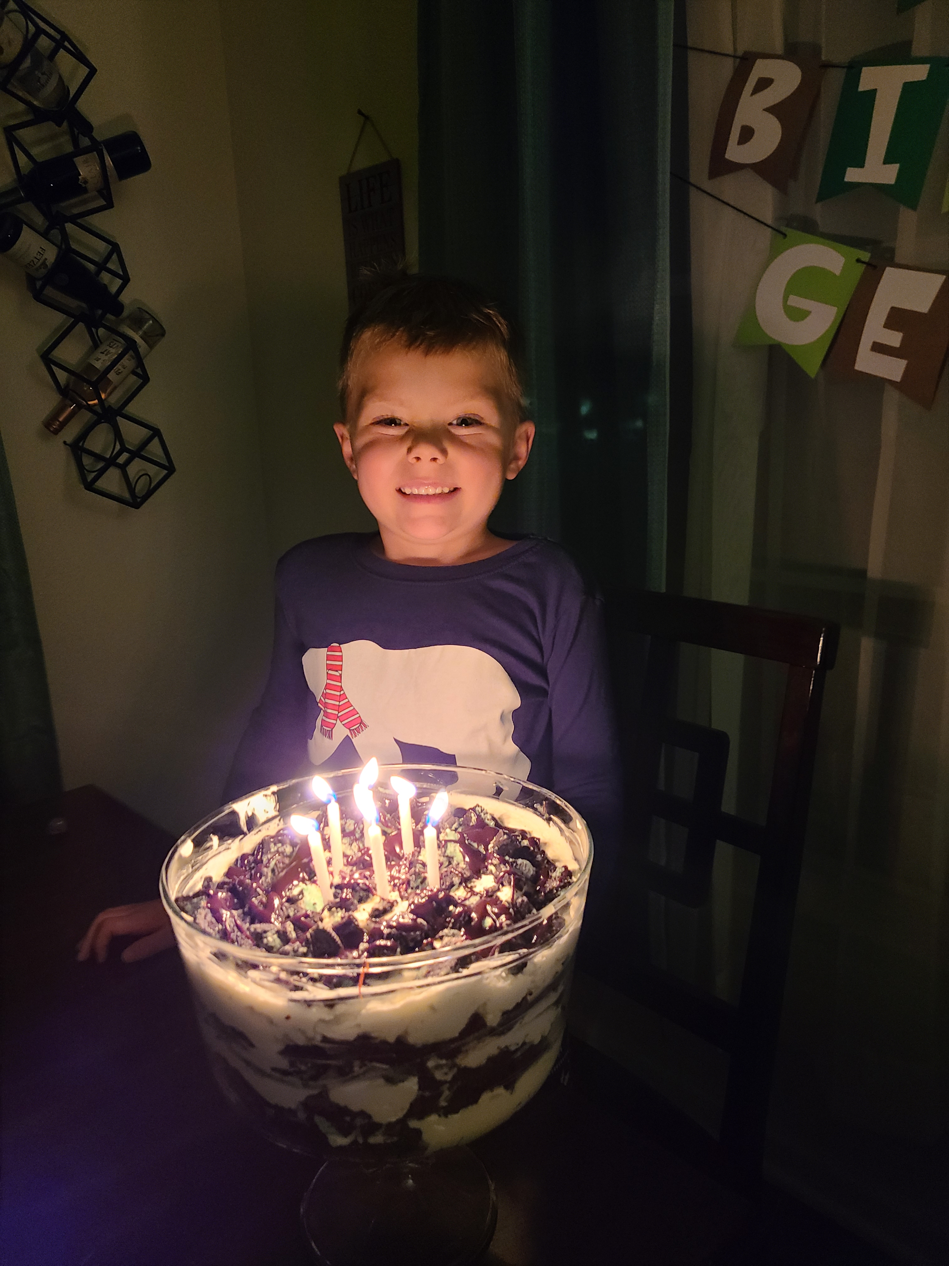 We celebrated a little bit more on Gerrit’s actual birthday with presents from us and a mint chocolate trifle!