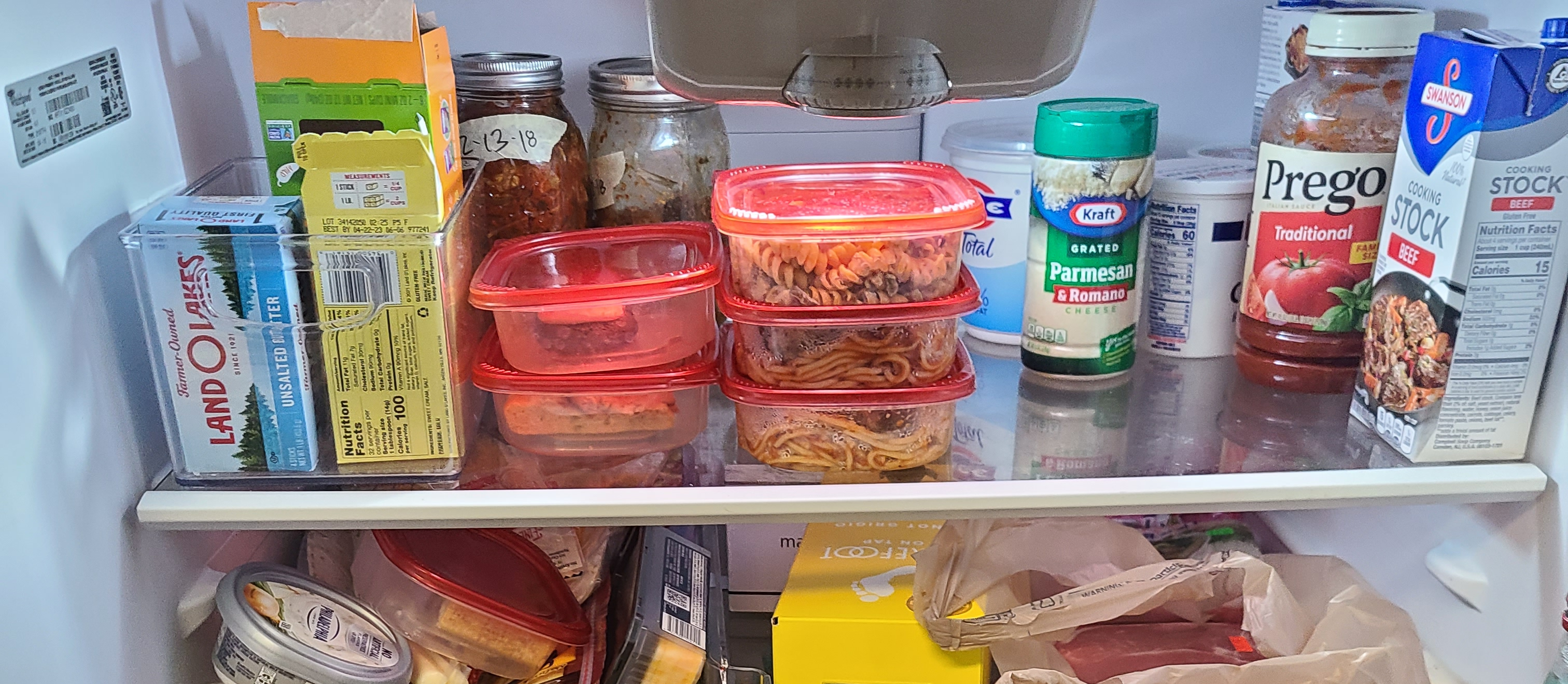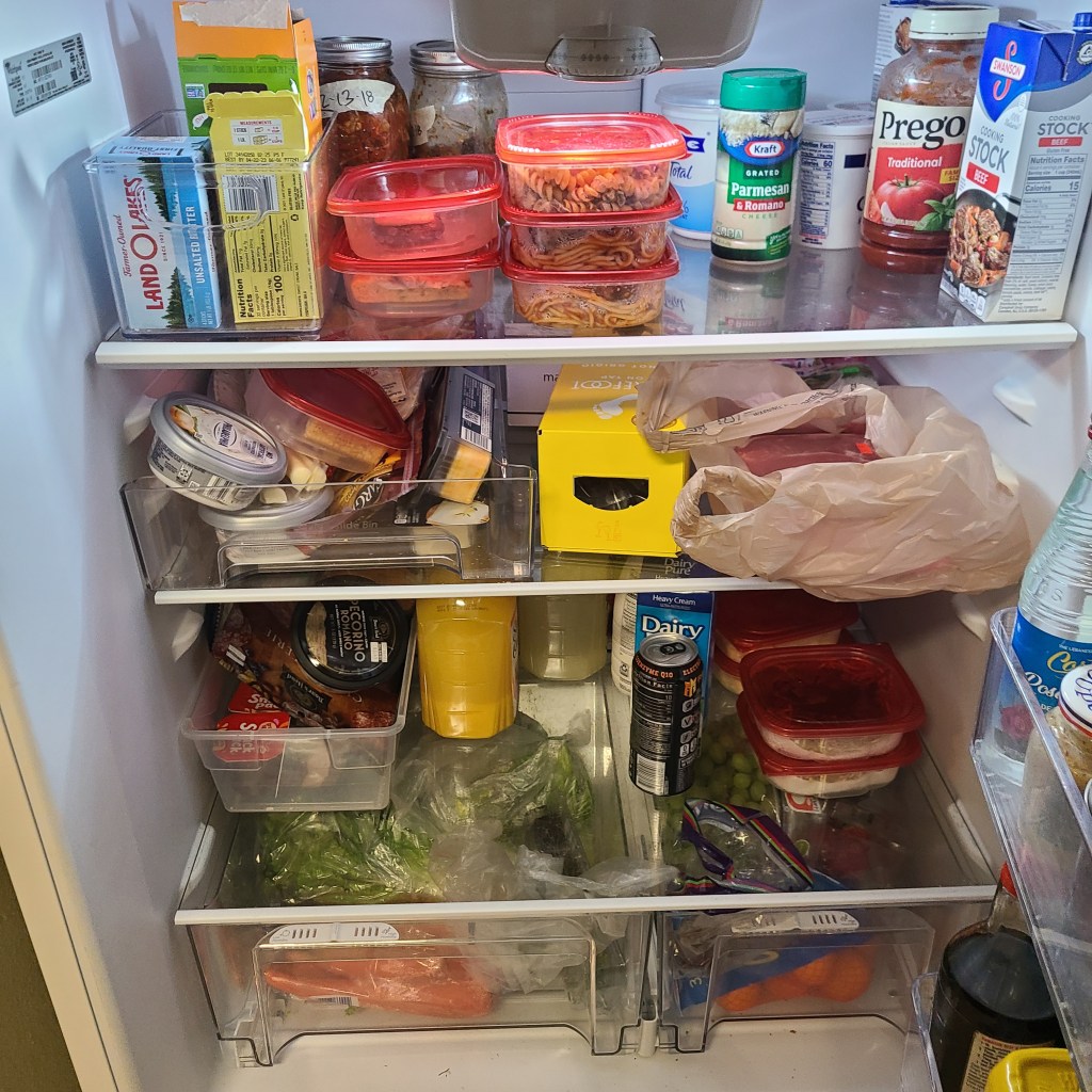 I remember Andrew asking me every day “which one of these containers am I supposed to eat?” and it drove me crazy. I eventually started telling him “it’s always the top container furthest to the left!” When he asked me how I knew that, I told him I had a system. The newest leftovers were always on the bottom and furthest to the right on the top shelf. “Seriously?” he asked. “You move the containers around every night?!” I admitted that yes, I kept them organized this way to make it easy for him (and me) to go right in order of oldest to newest.