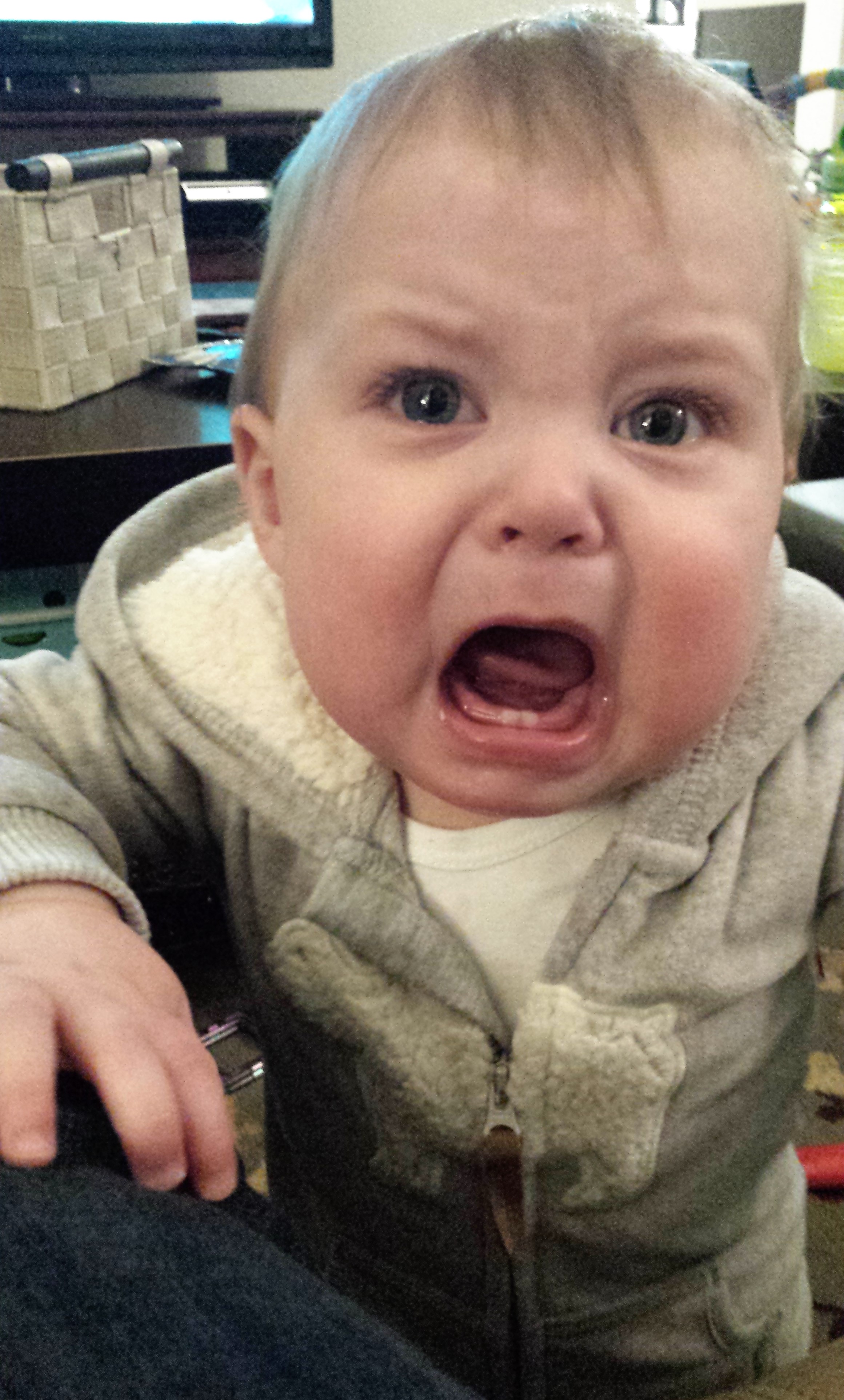 Dislikes: getting his diaper or clothes changed, sitting down, long drives in the car, when Mama walks away/not being able to see Mama, getting his face washed