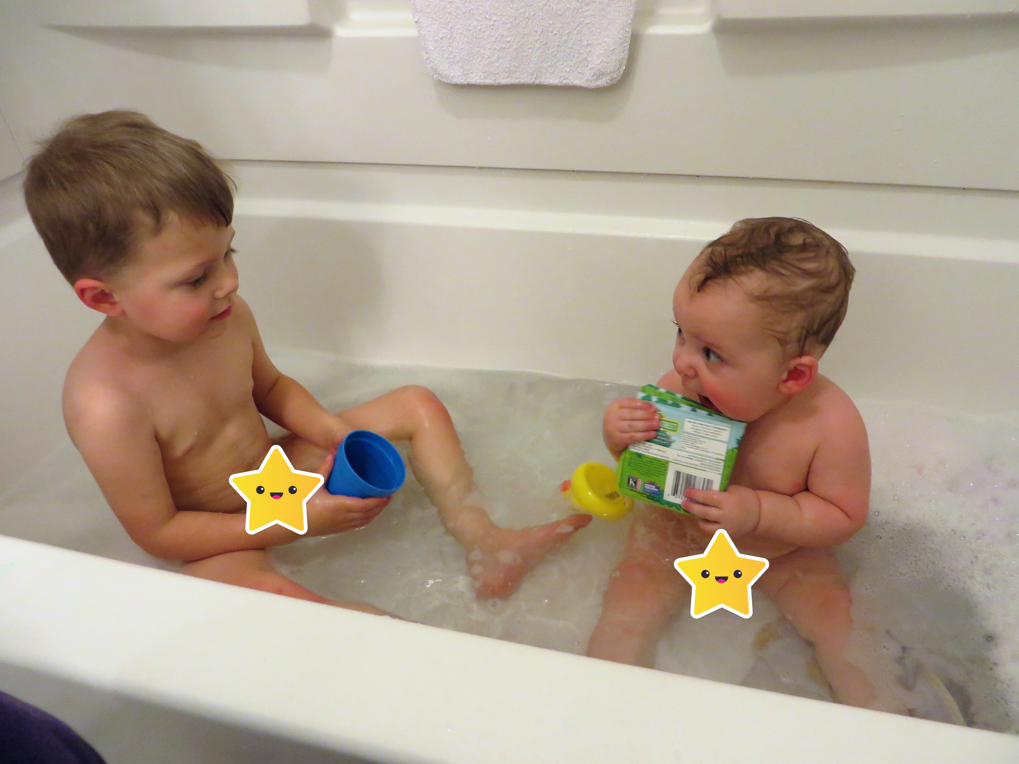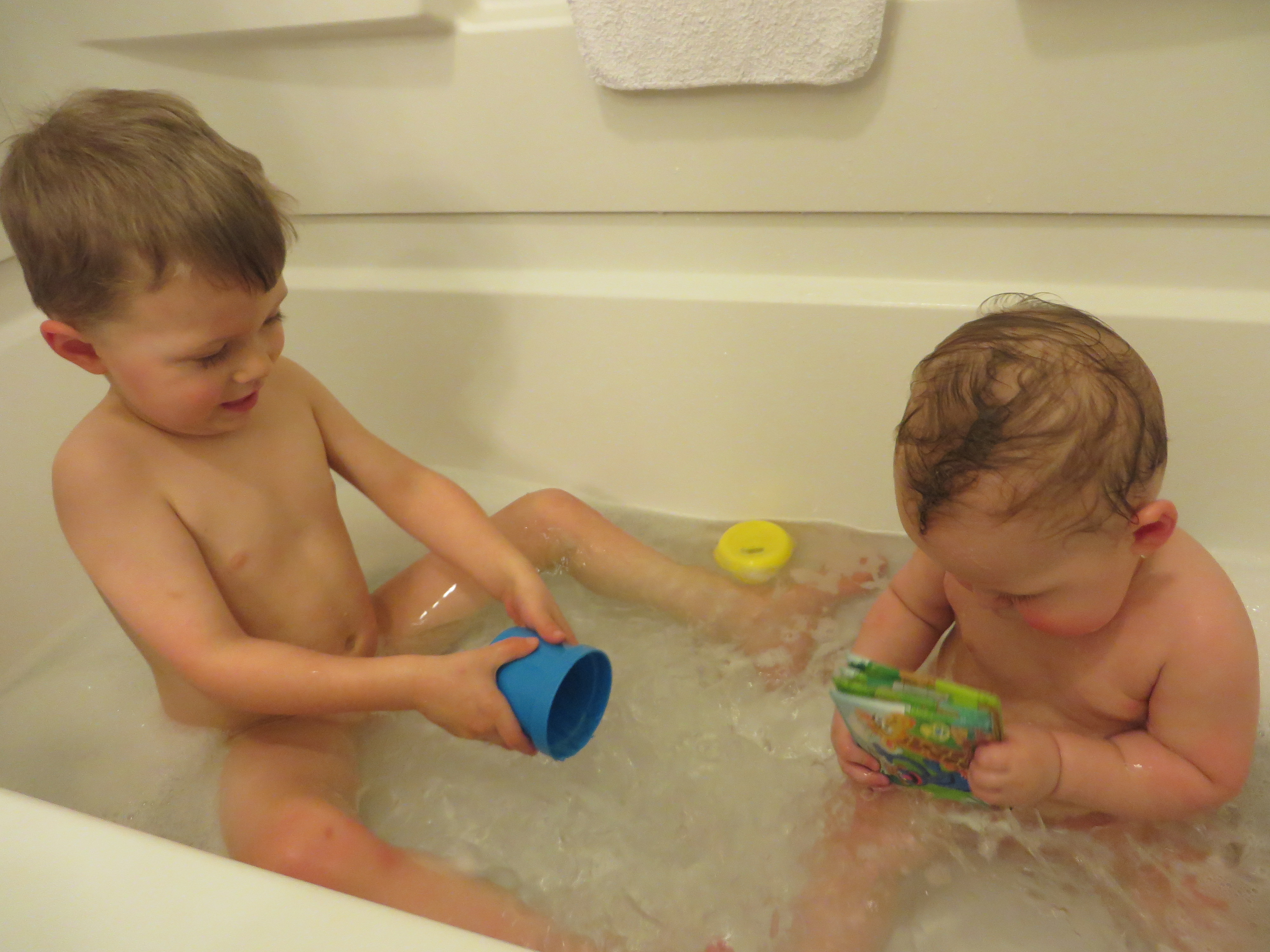 I asked Gerrit if he’d like to take a bath with Berend one night because Gerrit was starting to never want a bath (“Can I just take one tomorrow?”), and he was thrilled about it. I only bathe Berend every 3 days to avoid drying out his skin, so now Gerrit is on the same bath schedule. And for winter, that works out fine! I think Berend enjoys his bath time no matter what, but Gerrit really likes having someone else in the tub with him, I think. So bath time almost always happens after Berend’s dinner but before Gerrit’s (and our) dinner, and it’s working out just fine.