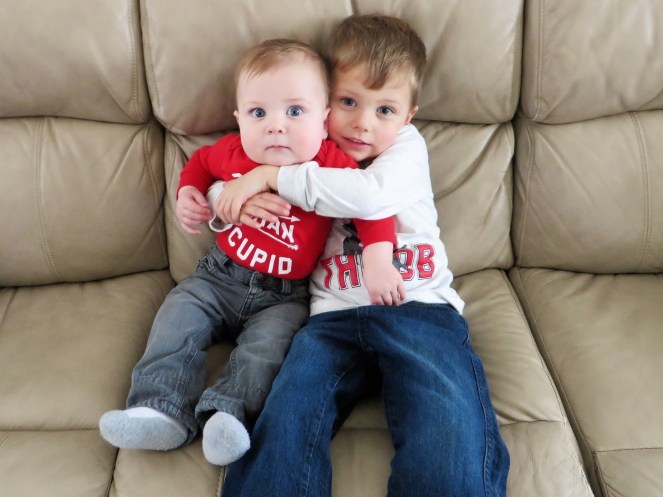 Berend also celebrated his first Valentine’s Day! Nothing too eventful for him, but I did try to get some cute brother photos. I wasn’t too successful…