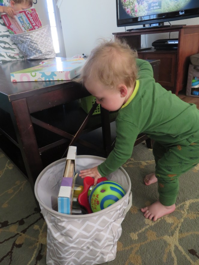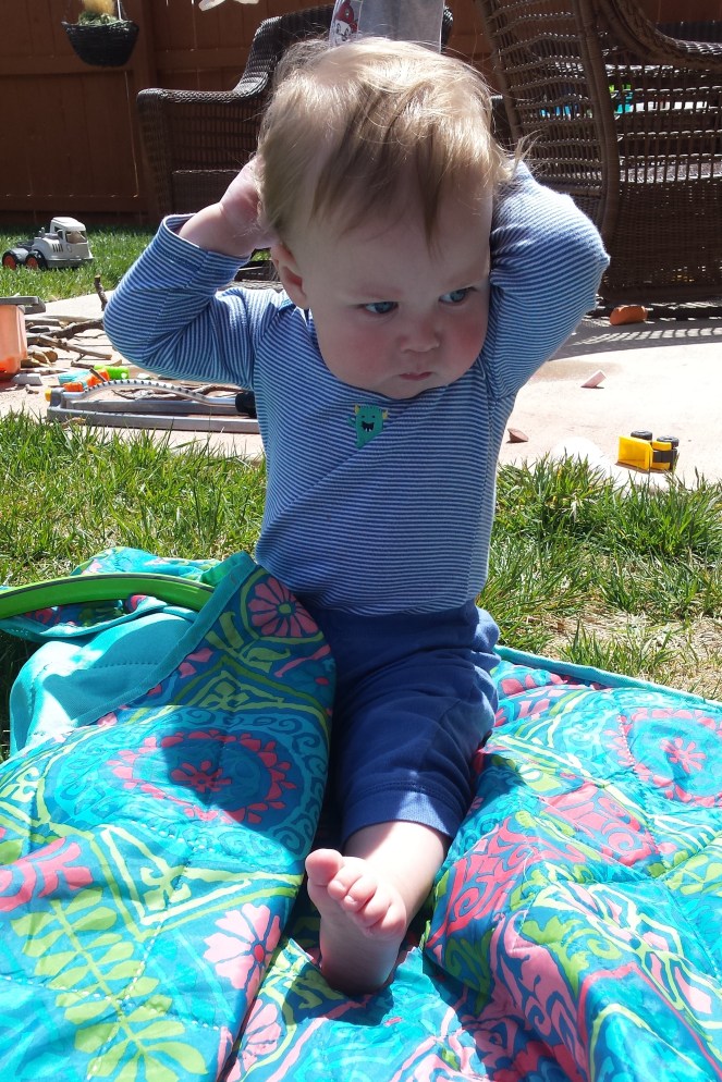 Gerrit dislikes coming in from outside, haha. Usually I have to suggest that we go in for some Goldfish to get him to agree to go inside without tears. He also dislikes getting his diaper changed. I don’t think he so much dislikes getting a new diaper, he just doesn’t want to stop what he’s doing to get changed.