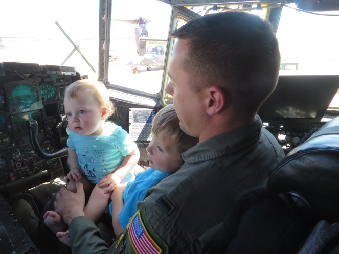 We tried to go watch Andrew come in from his first solo flight in the T38, but… toddler life. I don’t know why I always underestimate how long it will take us to get ourselves ready and out the door. I did get this cute photo of Andrew and Gerrit after his flight though.