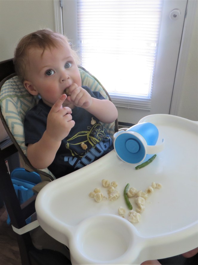 Things we can normally count on him eating: scrambled eggs, fruit, pasta with sauce & meatballs, Goldfish crackers, and Cheerios. He used to LOVE meat, but now he is hit or miss with that too. Some nights he loves broccoli, other nights he won’t touch it. He’s done well with peas, carrots, and corn here and there, but nothing consistent.