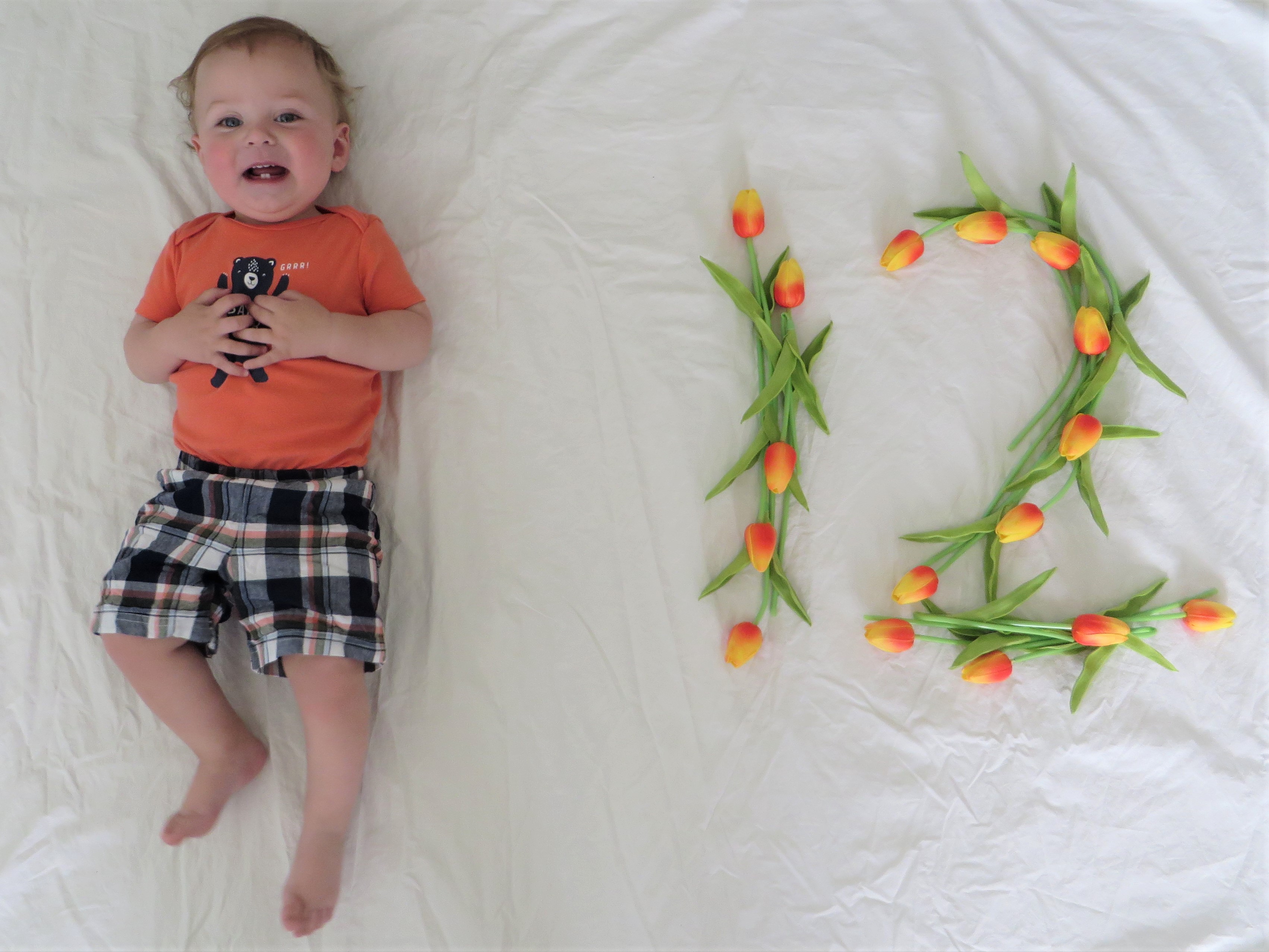 Age: 12 months on 15 May 2019 Weight: 22 lbs 3 oz Height: 30.94 inches Teeth: 6 (but #7 is so close) Clothing Size: 12-18 months & 18 months Diaper Size: size 4 and one size in cloth
